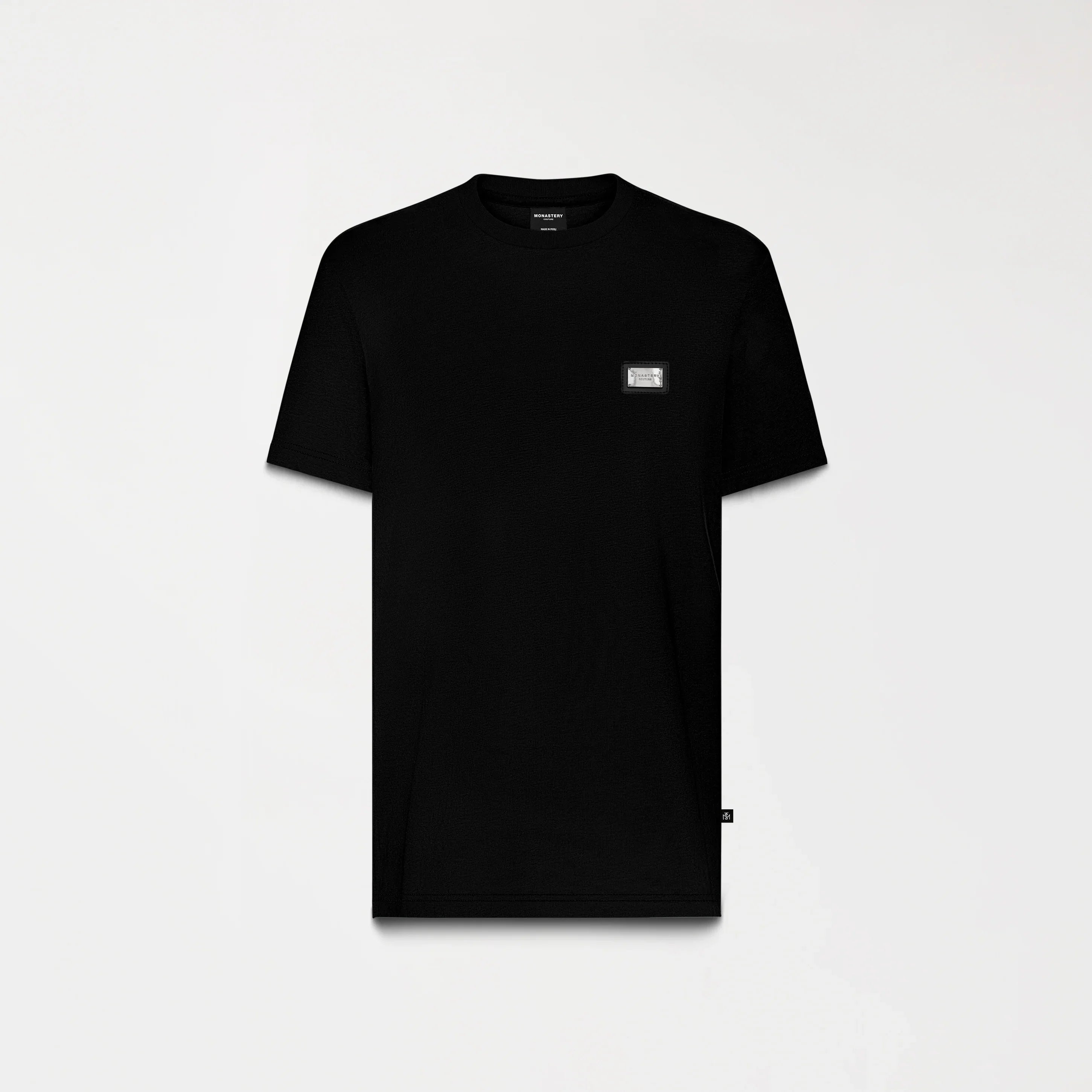 En el frente, un aplique metálico distintivo de la marca aporta carácter y profundidad, convirtiéndose en el punto focal del diseño. En la espalda, los logos insignia se presentan mediante técnica de estampado plano, logrando un acabado limpio y atemporal que refuerza la identidad exclusiva de Monastery.