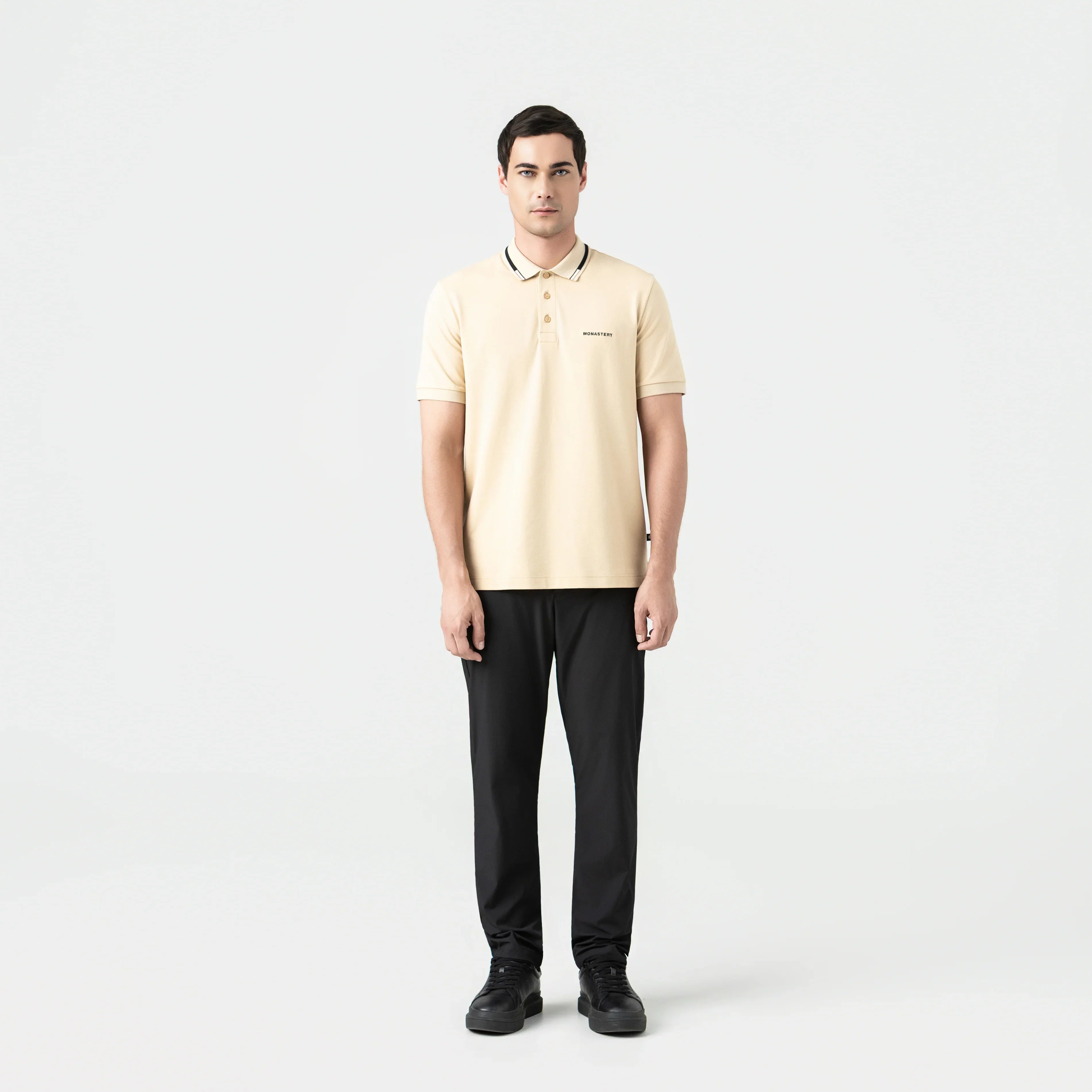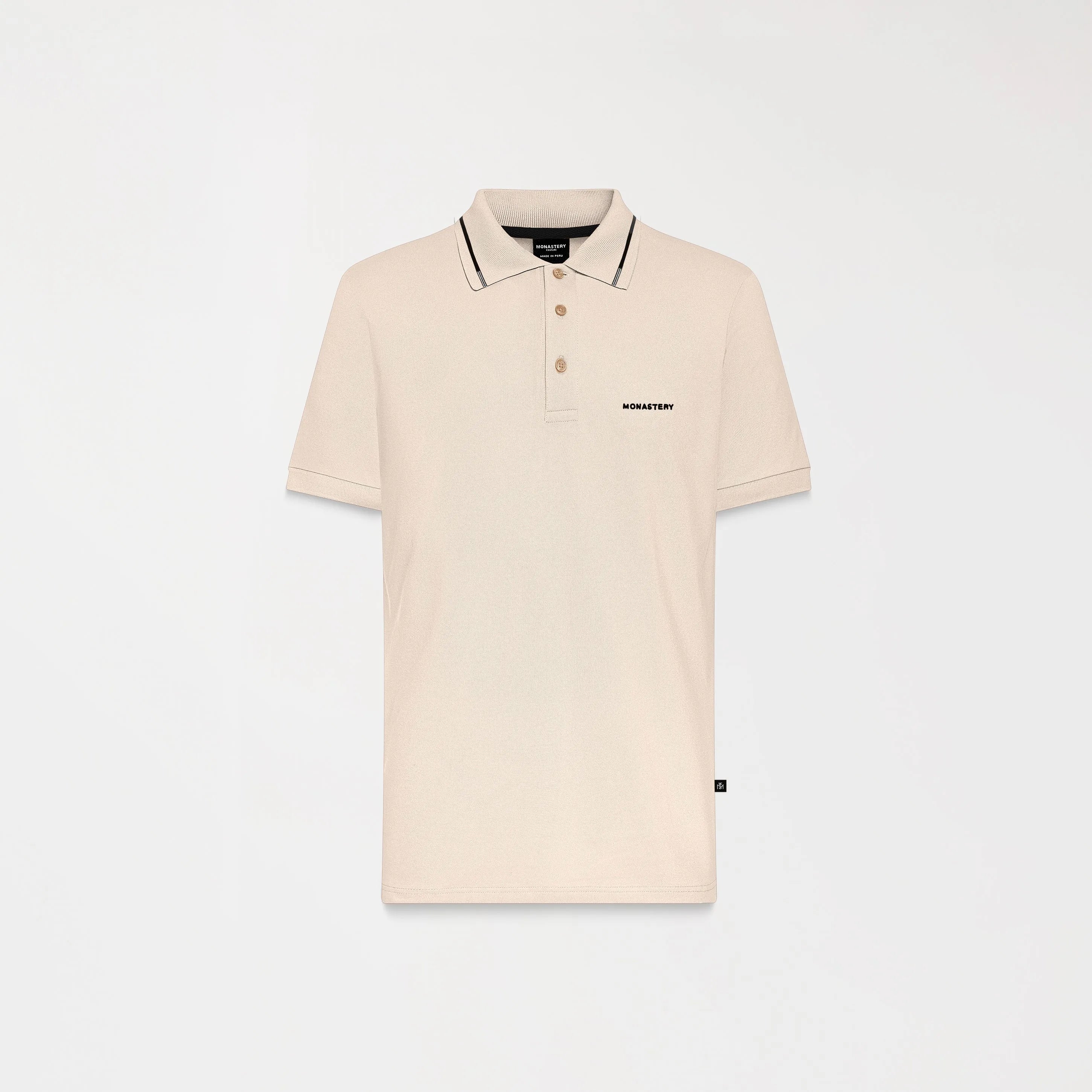 Artax es una polo masculina de silueta regular, confeccionada en algodón pima peruano 100% exclusivo para Monastery. Ligera y contemporánea, destaca por la atención al detalle: cuello tejido con tipping en contraste, puños tejidos que aportan definición y tapacuellos en tono complementario. El logo bordado al frente y el estampado en alta densidad en la espalda refuerzan su identidad, mientras los botones contramarcados sellan su carácter distintivo. Una prenda diseñada para un estilo casual con frescura y personalidad.