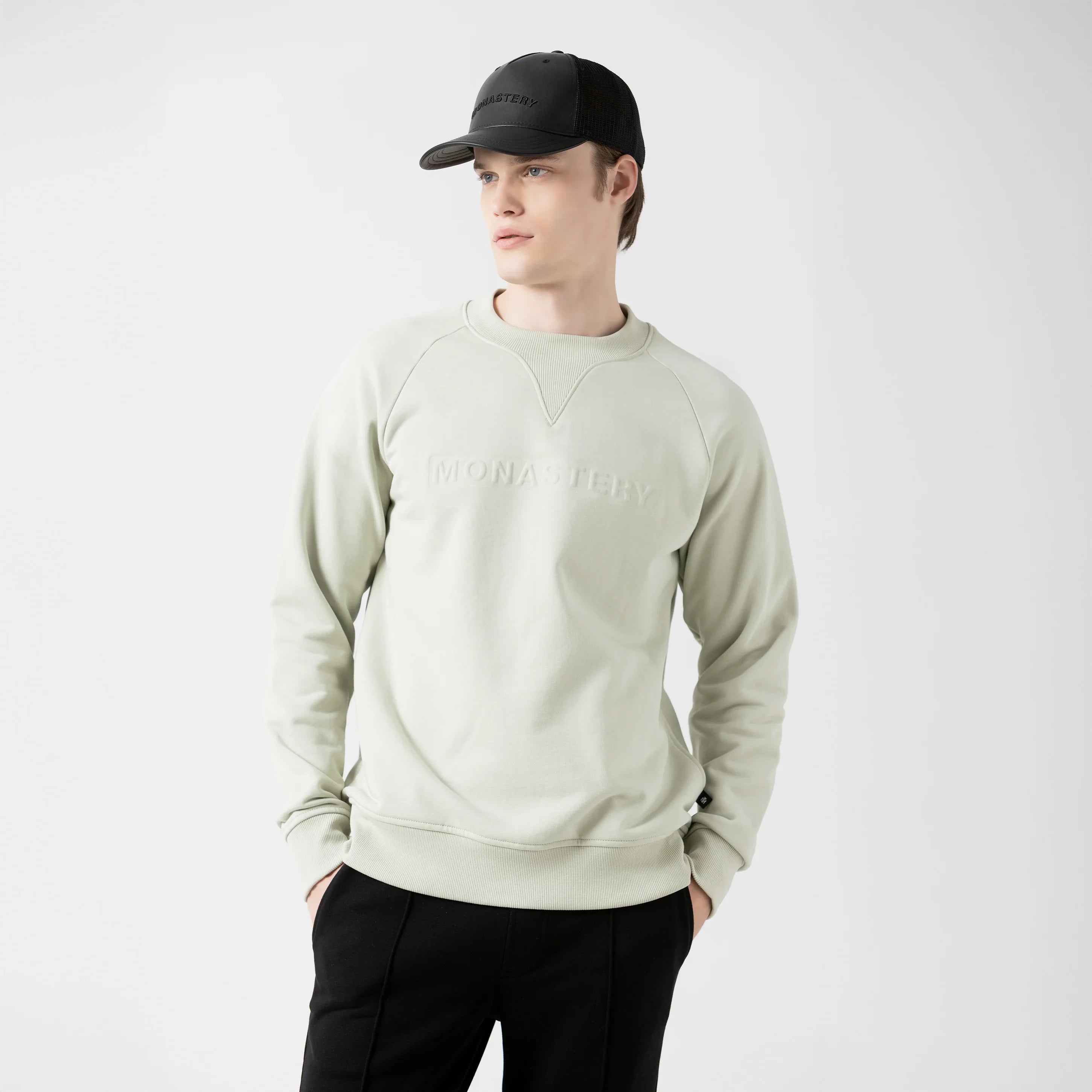 En el frente, resalta el logo Monastery aplicado en técnica termoformada de alta precisión, generando relieve, definición y una textura distintiva.