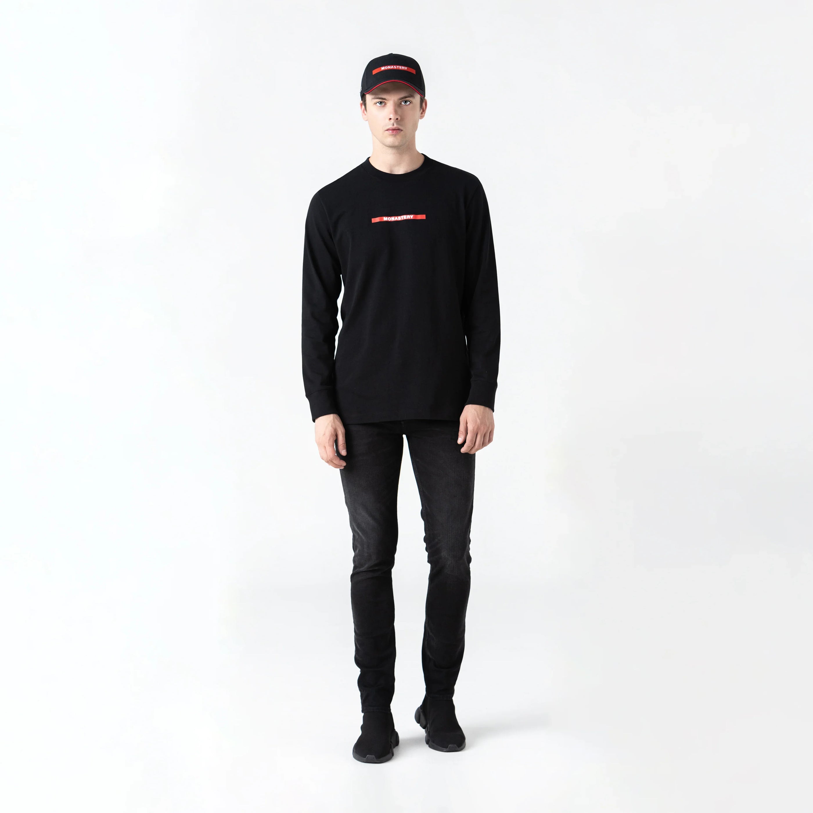 Begarian es un long sleeve masculino de silueta regular con cuello de 2,5 elaborado en 100% algodón exclusivo para Monastery. Presenta arte estampado con nuestro logo Monastery en frente centro en combinación de técnica alta densidad y plano, en espalda logos insignia en alta densidad. Begarian es un articulo cómodo, elegante y un básico perfecto para lucir en ocasiones elegantes o en tu día a día.