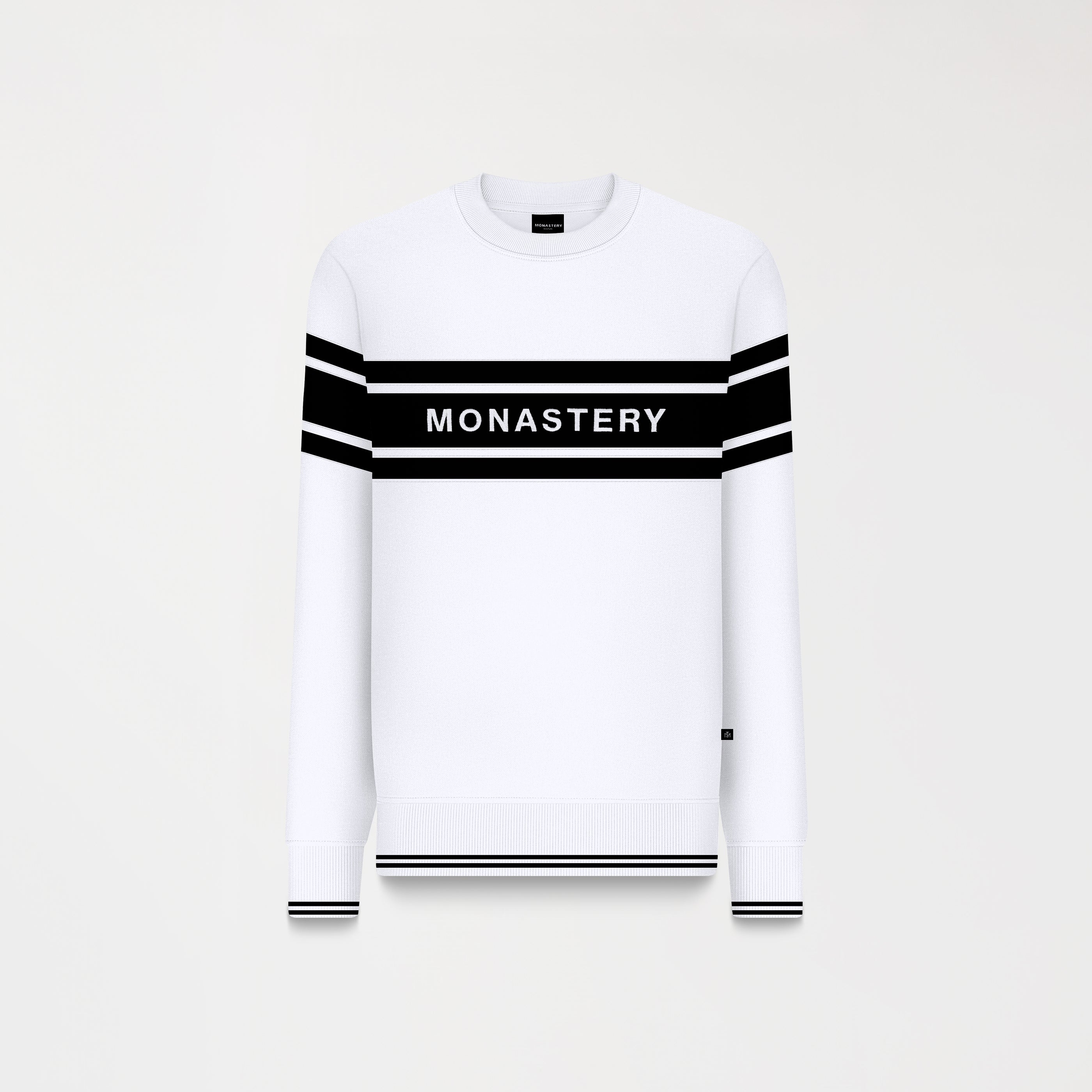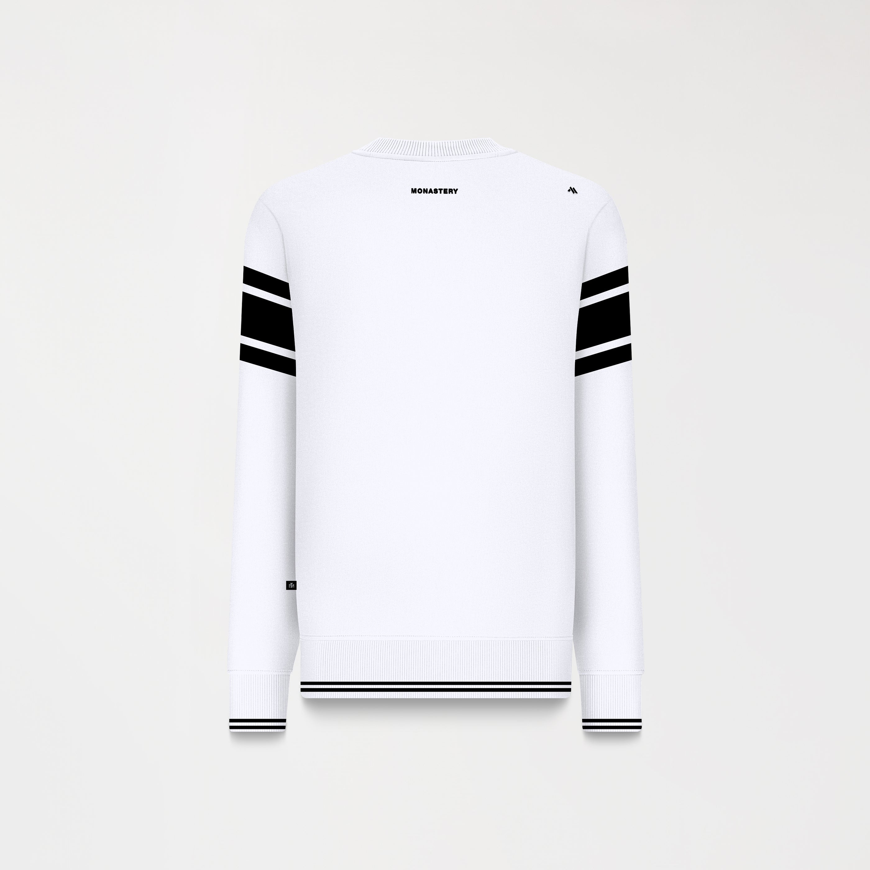Su diseño moderno incluye cortes horizontales a lo largo de la prenda, aportando textura y estructura. En el pecho, destaca un bordado plano con el nombre de la marca, que brinda un toque distintivo y elegante. El cuello y los puños tejidos con tipping realzan el acabado, creando un contraste sutil y sofisticado.