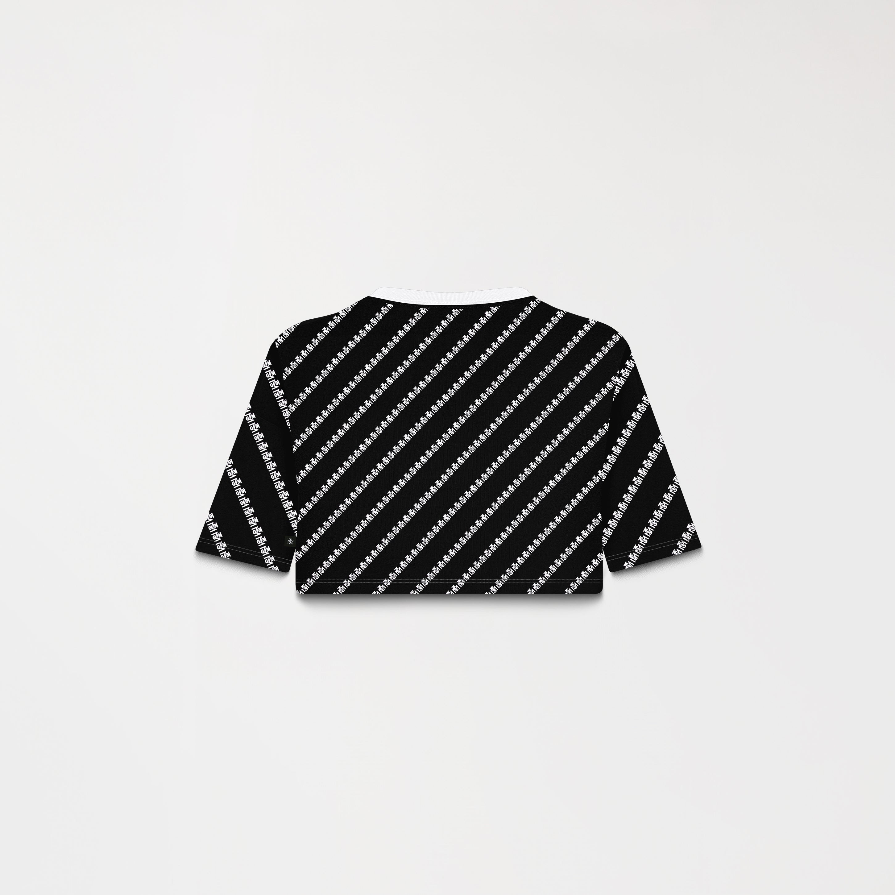 Britania es un crop top femenino confeccionado en algodón 100% exclusivo de Monastery. Su silueta pequeña se complementa con un fondeo total del logo TSM en repetición diagonal, creando un patrón dinámico y envolvente. El contraste de colores entre fondo y logotipo aporta fuerza visual, convirtiéndolo en una pieza ideal para quienes buscan estilo con personalidad.