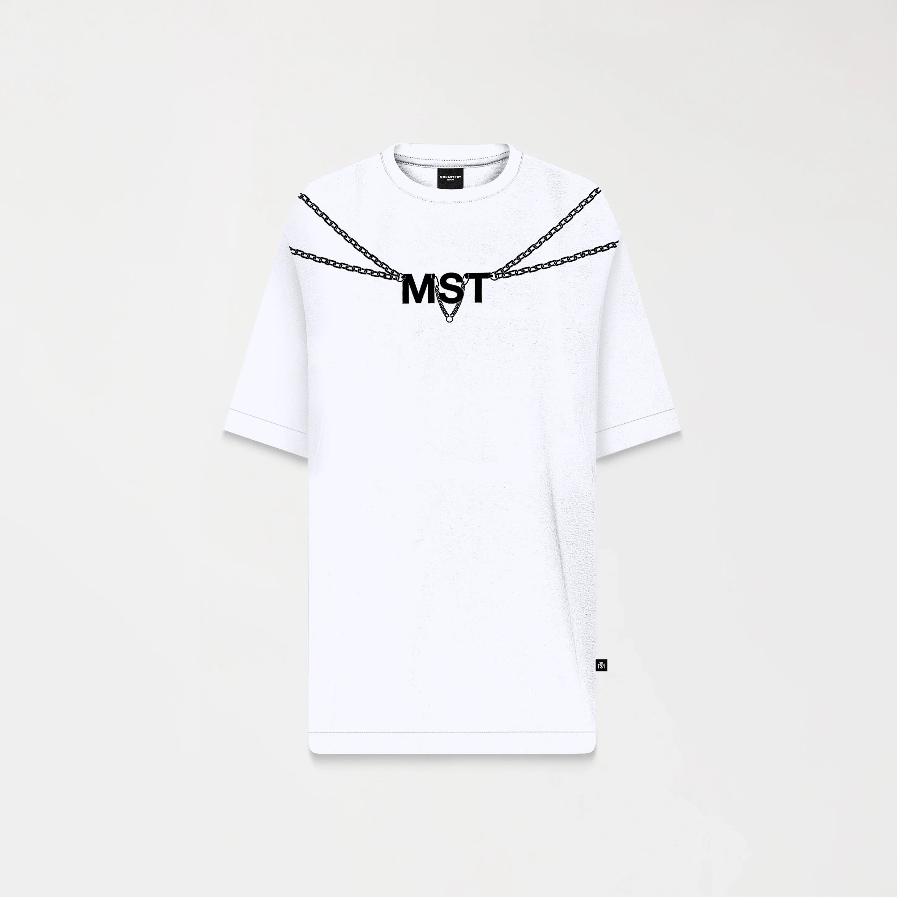 CHAINS es una oversized t-shirt confeccionada en tela Monastery, diseñada para desafiar lo ordinario. Su caída estructurada equilibra suavidad y fuerza, fiel al lenguaje textil de la marca. En el frente, una gráfica poderosa se eleva en alta densidad, aportando volumen y textura: opulencia y restricción convertidas en símbolo. No es solo una prenda, es una declaración de intención. definición. Una prenda versátil que eleva lo esencial con actitud y sofisticación.