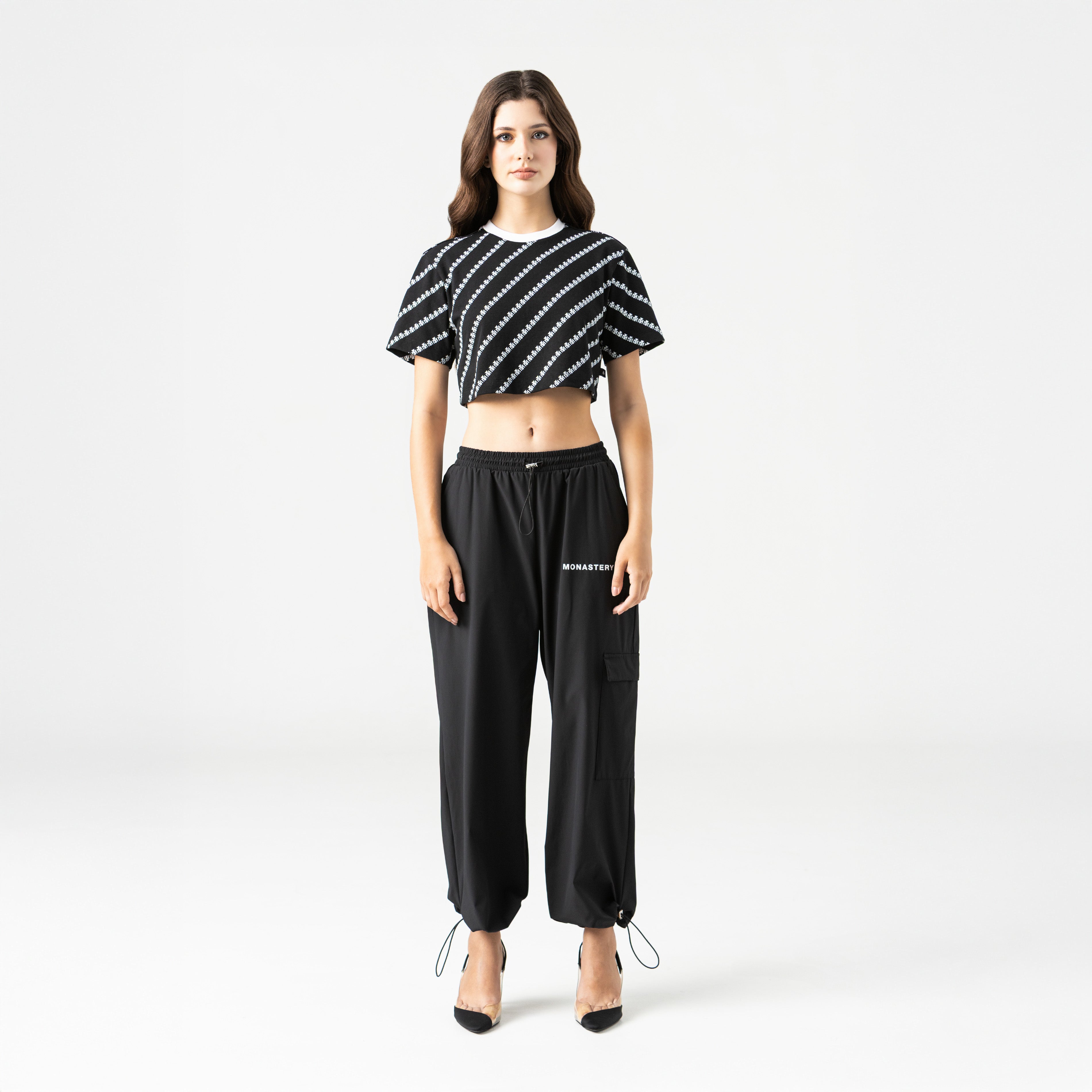 Pantalón de silueta cargo en tono Black Meteorite, diseñado para combinar estilo utilitario y vanguardia urbana.Cuenta con estampado plano en frente y posterior, que aporta un toque gráfico distintivo. Confeccionado envasé textil de alta calidad, garantiza confort, resistencia y excelente caída. Ideal para looks versátiles con carácter contemporáneo.