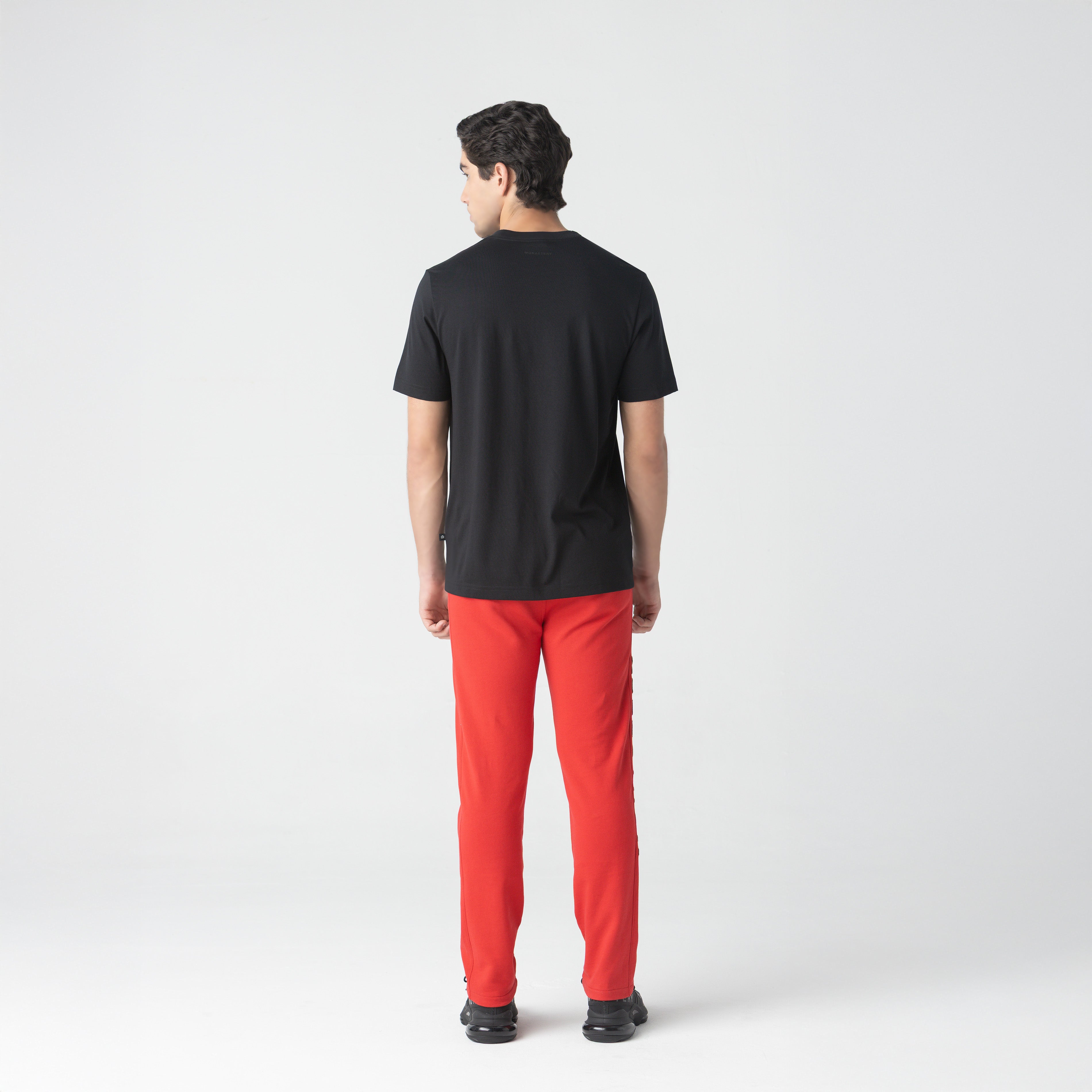 En el costado lateral derecho, incorpora el logo Monastery en técnica de bordado 3D, que genera volumen visual y un acento gráfico de alto impacto. En la parte posterior, el logo insignia en estampado de alta densidad refuerza la identidad de la prenda con una presencia sólida y definida.