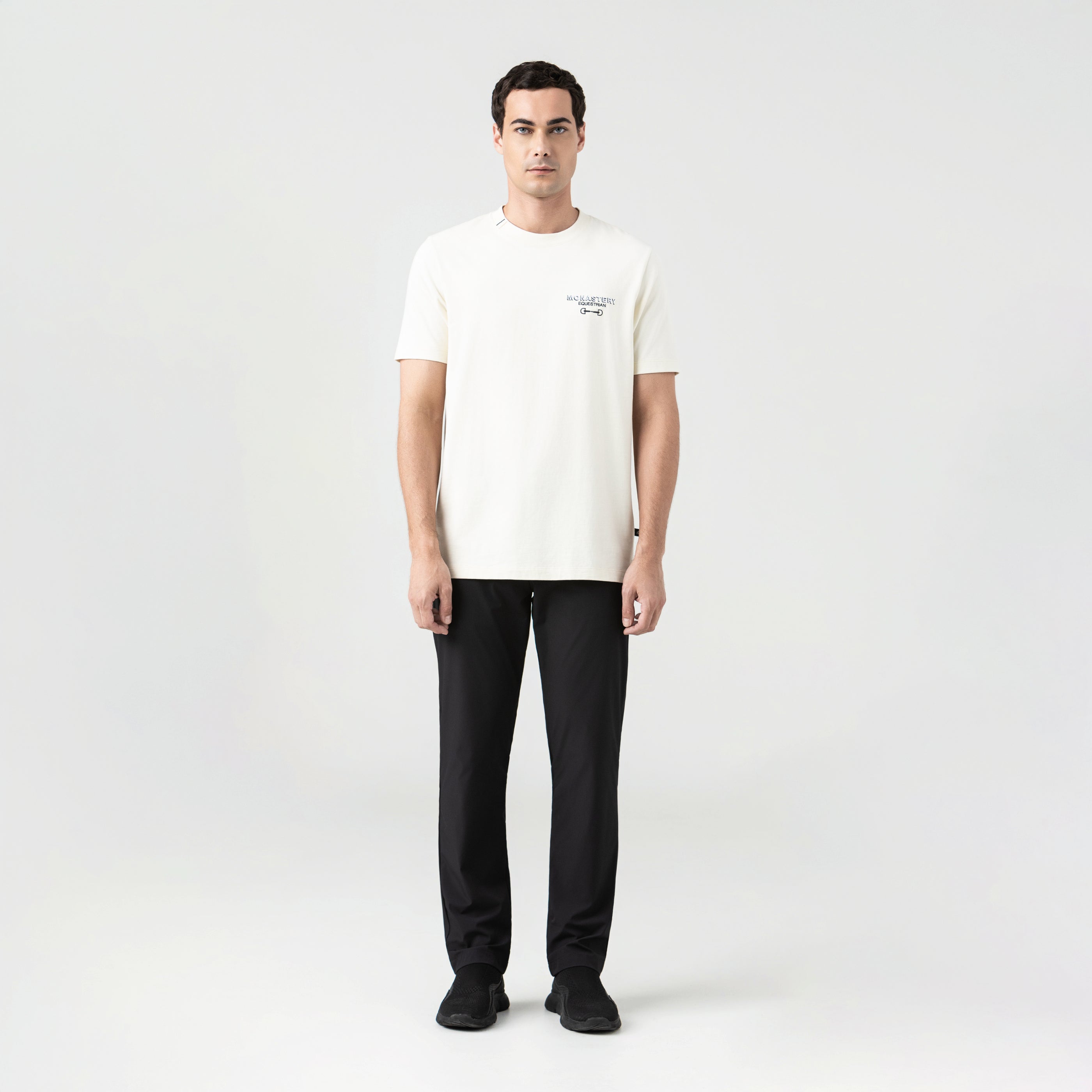 Dash es una t-shirt masculina que encarna la sutileza con carácter. Con silueta regular y cuello en rib de 2.5 cm, está confeccionada en algodón de alta calidad que asegura confort y una caída impecable. En el frente, un bordado plano aporta un gesto elegante y sobrio, mientras finas líneas bordadas en el lateral del cuello introducen un detalle inesperado y sofisticado. La espalda se impone con un estampado en alta densidad que equilibra la pieza con fuerza visual y personalidad. Una prenda concebida para quienes saben que el verdadero lujo reside en los detalles.