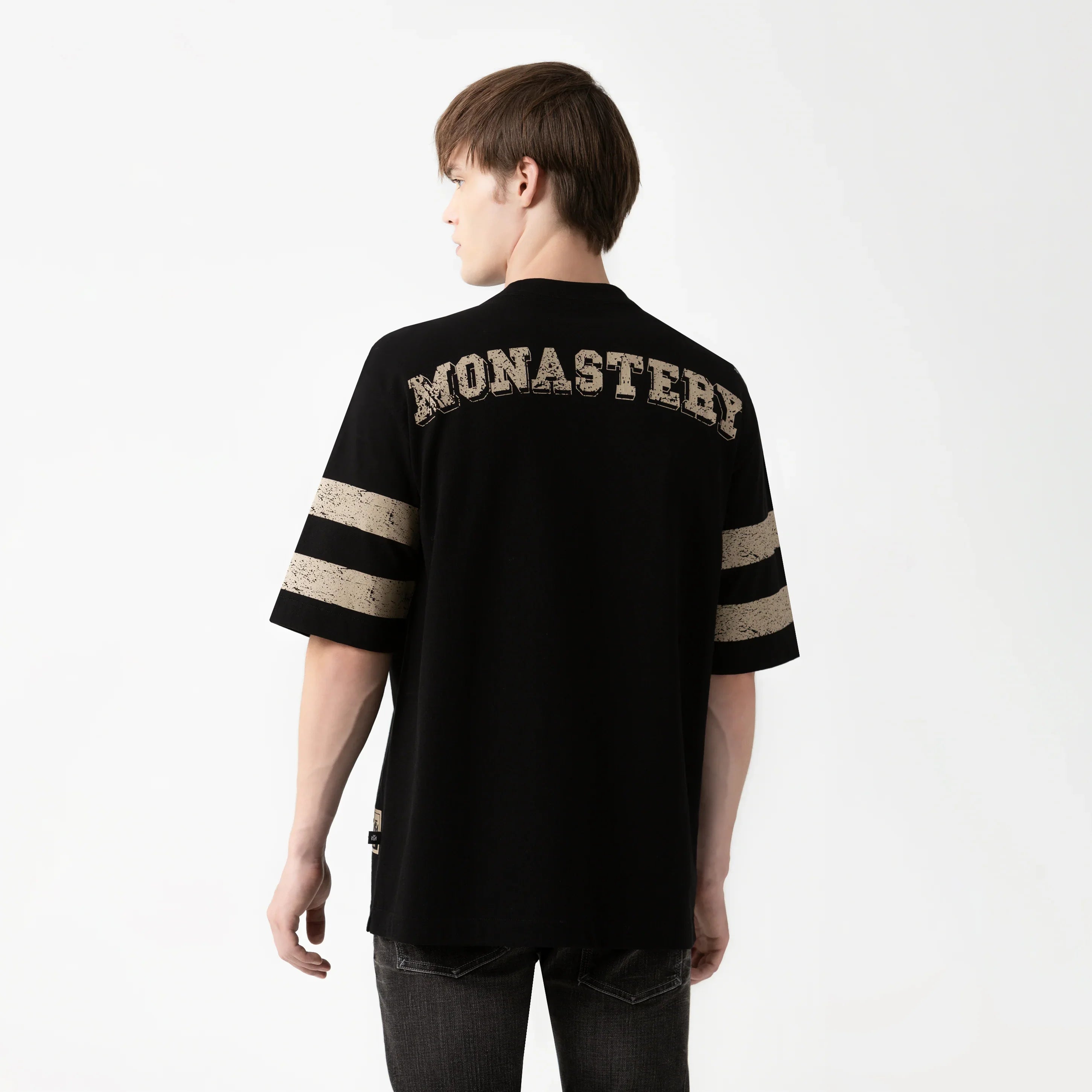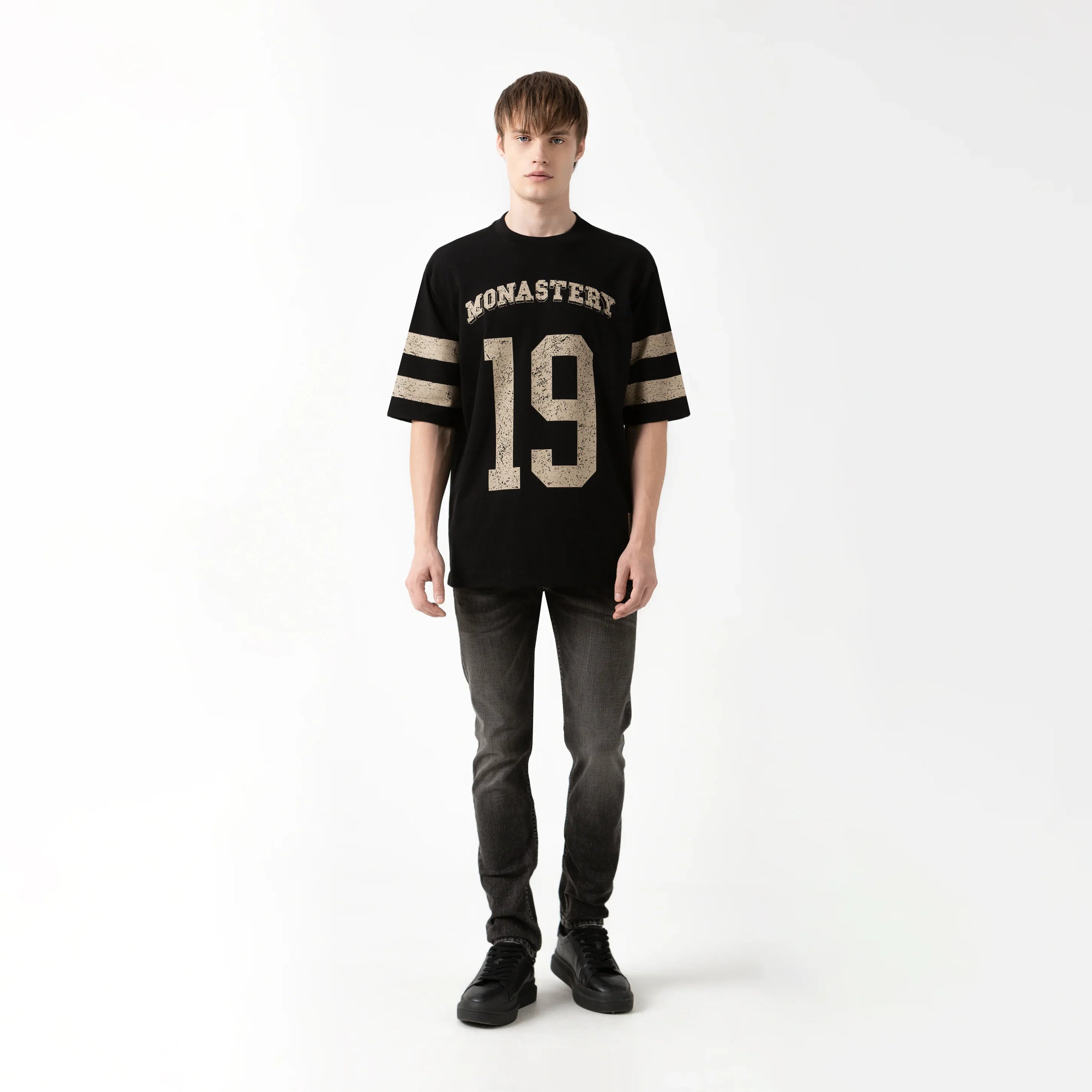 La Daven es una t-shirt de silueta oversized, confeccionada en tela Monastery 2, un algodón de alta calidad que combina suavidad y estructura para un fit contemporáneo.