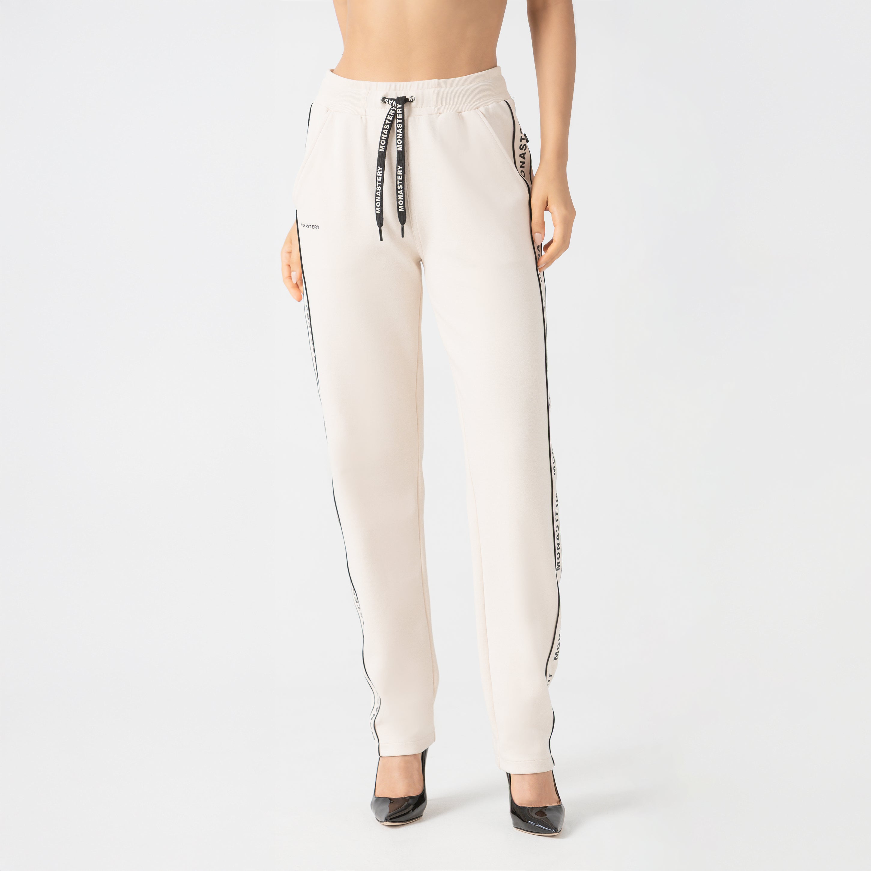 Pantalón deportivo en tono Sand Dollar, diseñado con vivos laterales en contraste que aportan dinamismo y una estética contemporánea.