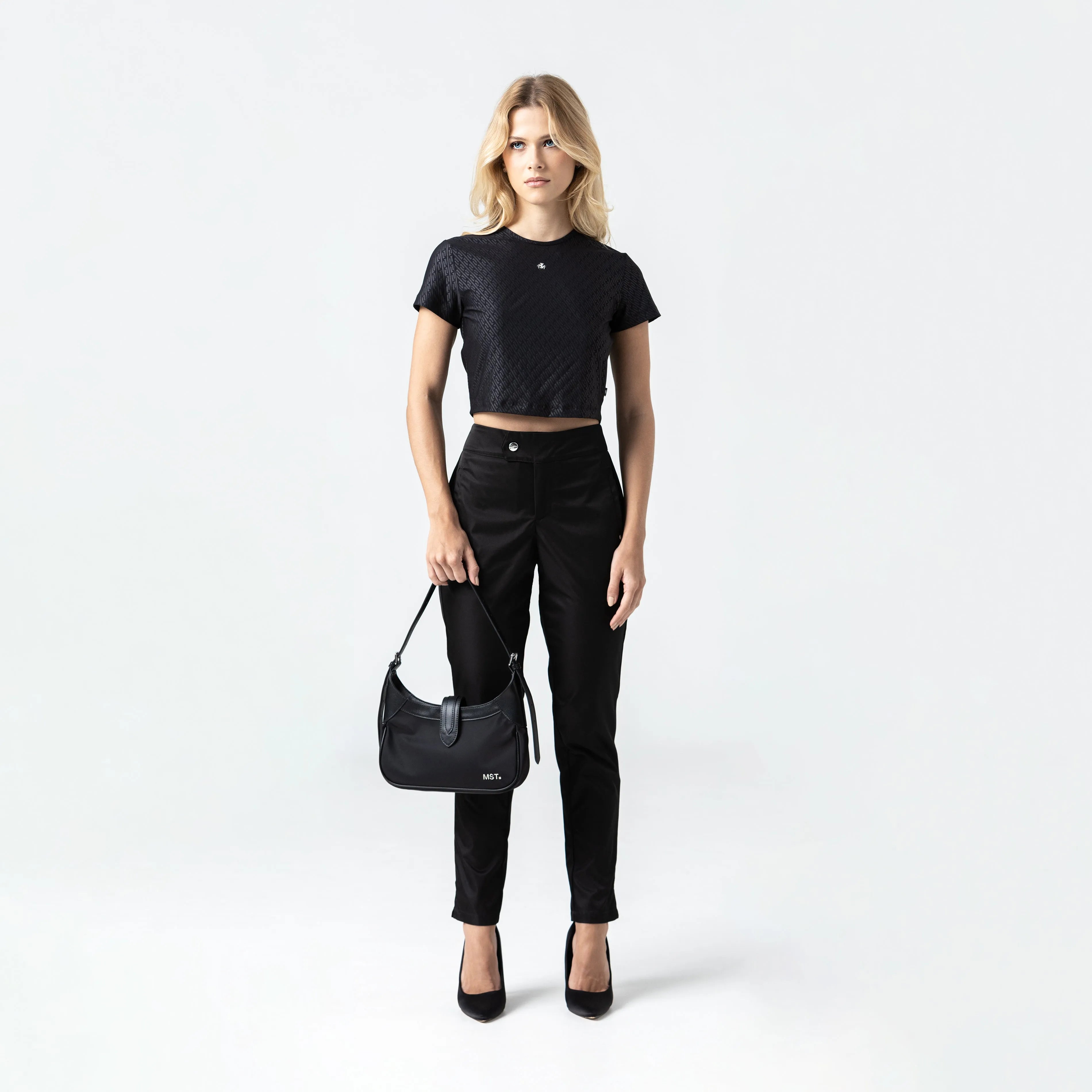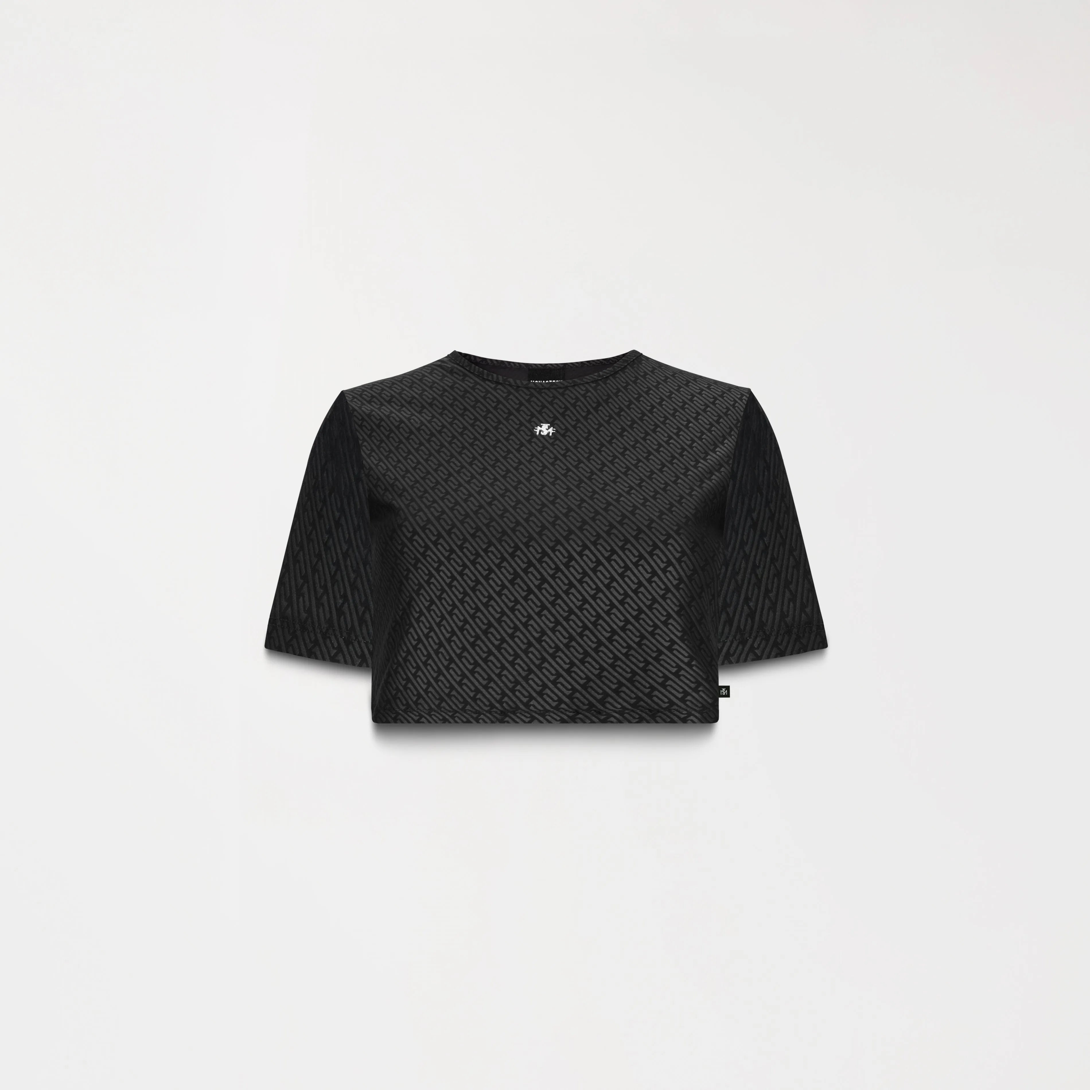 Monastery Crop top con cuello sesgo, elaborado en nuestra base textil Seul, esta base textil es exclusiva para Monastery, es marcado al calorcon un patron hecho especialmente para la marca. Esmme cuenta con una placa metalica a la altura del busto de nuestro logo Tsm y en posterior con nuestro logo Monastery, ambasplacas cuentan con un baño en plata añadiendo brillo y elegancia a la prenda. Esta prenda resalta la identidad de la marca atravez de cada uno de sus detalles.