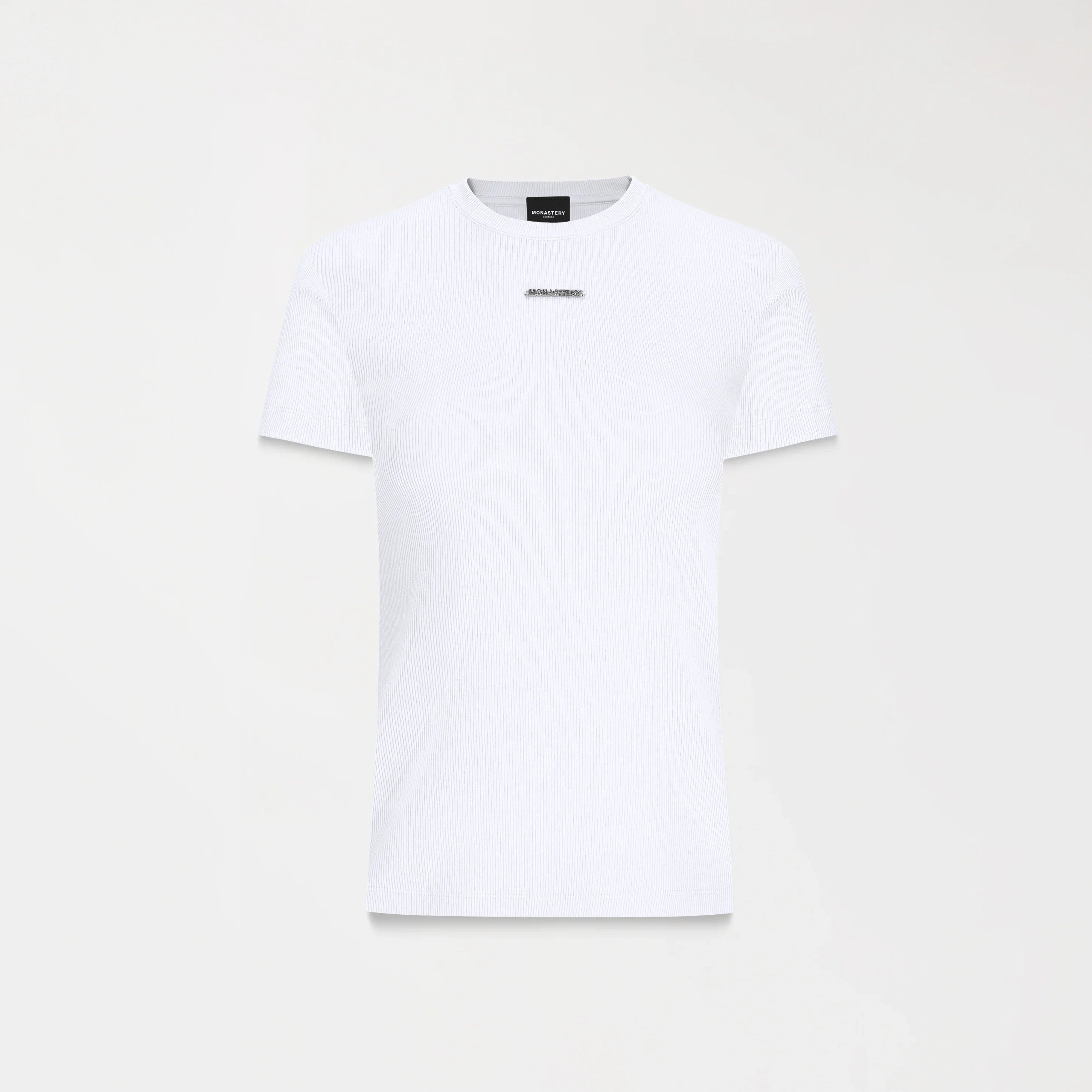 La t-shirt femenina Faiza está confeccionada en Rib Monastery, una base textil que proporciona un ajuste preciso al cuerpo y realza la silueta femenina con comodidad. Diseñada en silueta pequeña, esta prenda se destaca por su aplique metálico Monastery tanto en el frente como en la espalda, lo que le otorga un aire contemporáneo y elegante. Los insumos en tono plata brillante, de alta calidad, complementan su estética refinada, convirtiéndola en una opción ideal para quienes valoran el diseño con carácter y sofisticación.