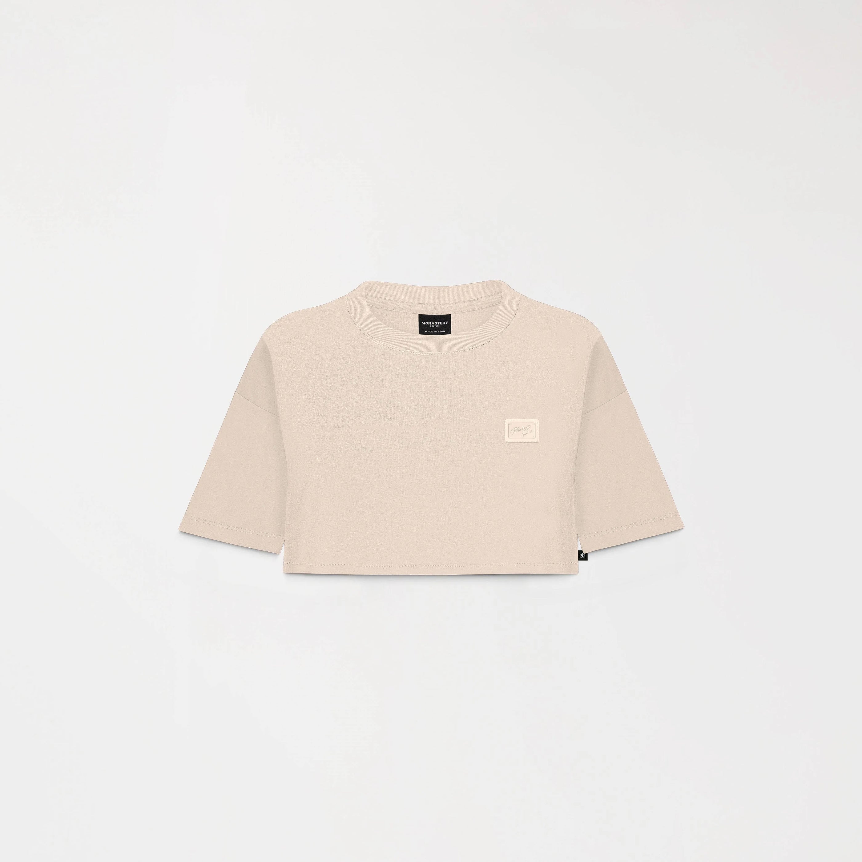 Crop top femenino en algodón 100% exclusivo para Monastery, elaborado en silueta pequeña. Gaterlen irish cream cuenta con placa metálica tono a tono contramarcada Monastery Couture, Este crop top es ideal para atuendos casuales de alto nivel, combinando con elementos que resaltan la identidad de la marca, estampado en posterior con Monastery y logo insignia tono a tono en alta densidad.