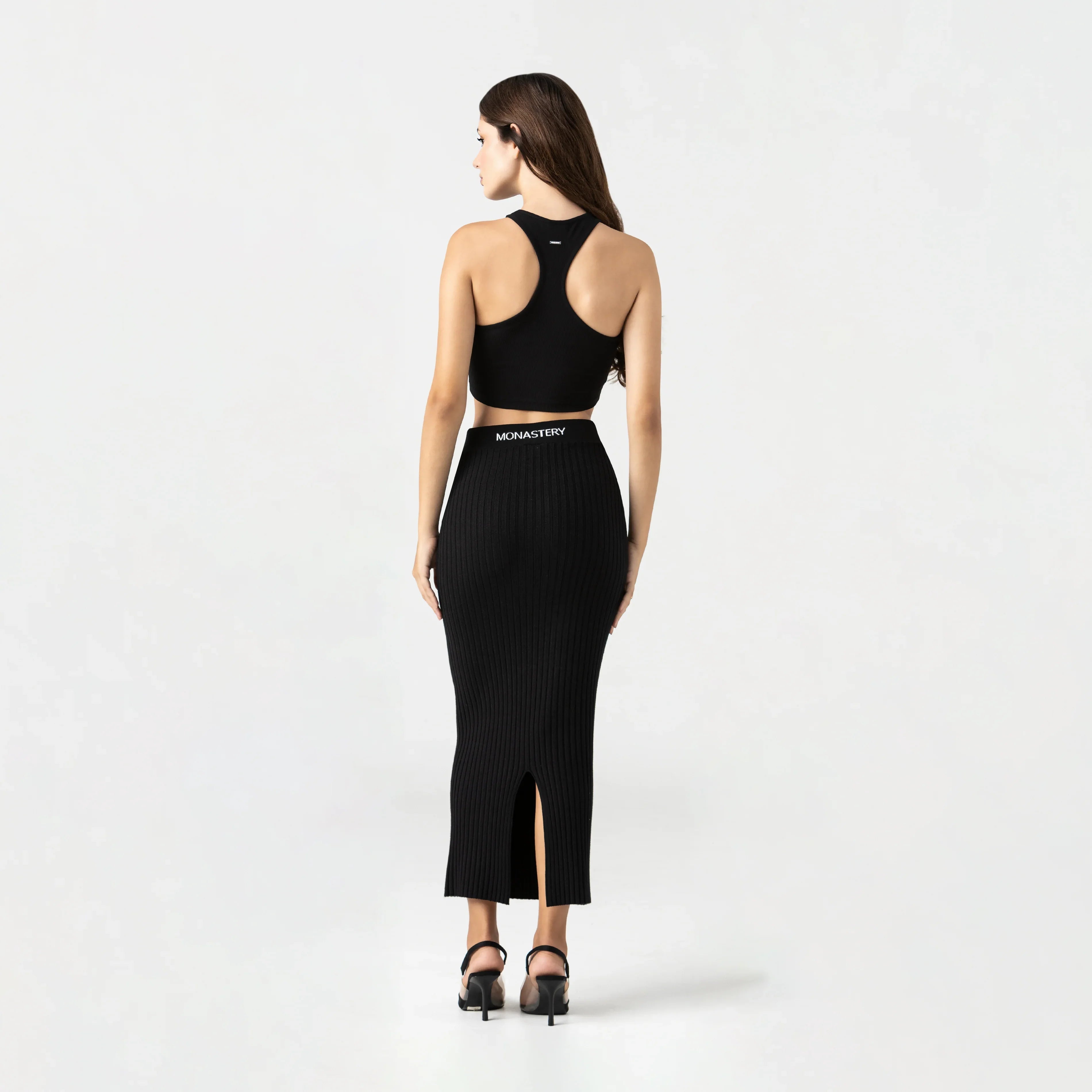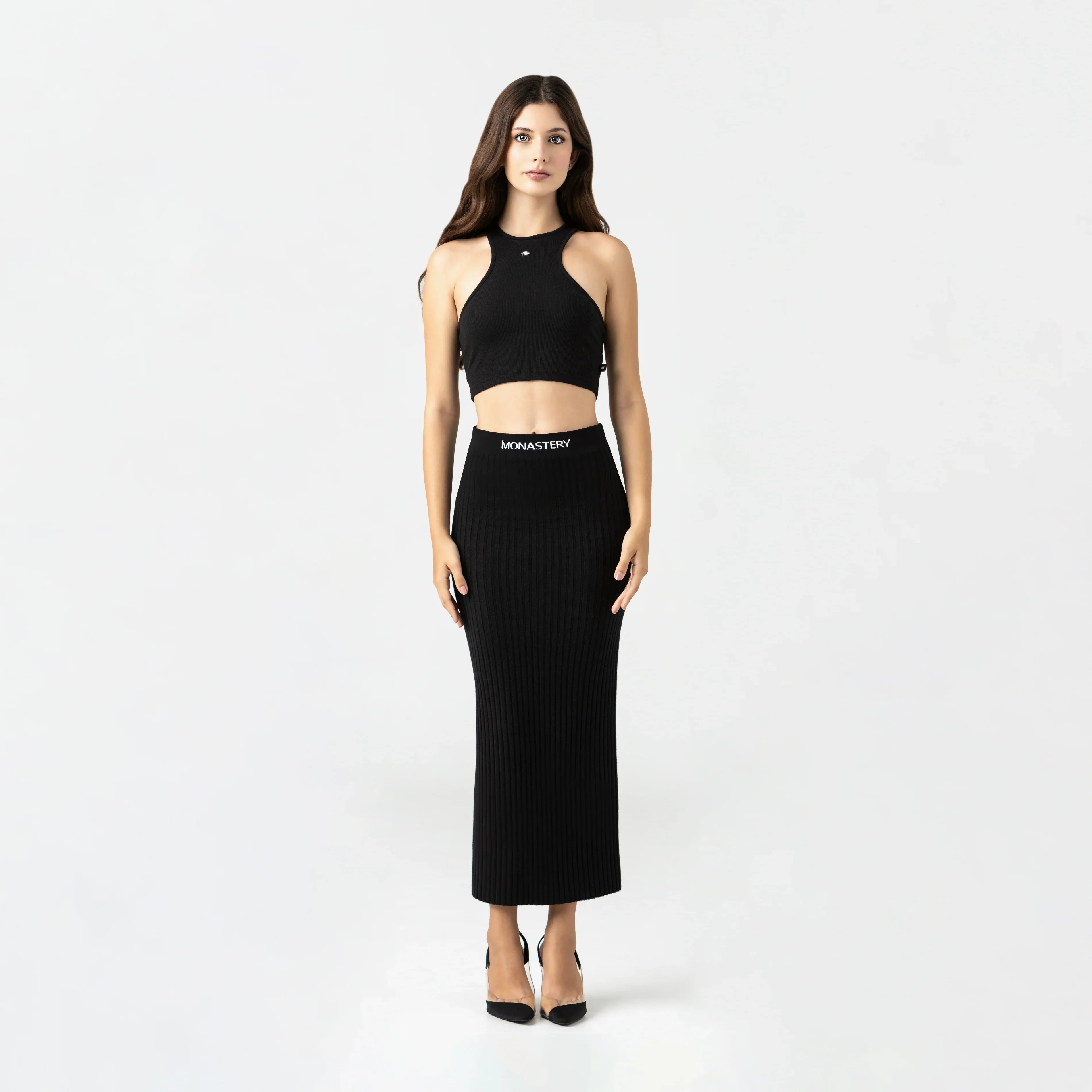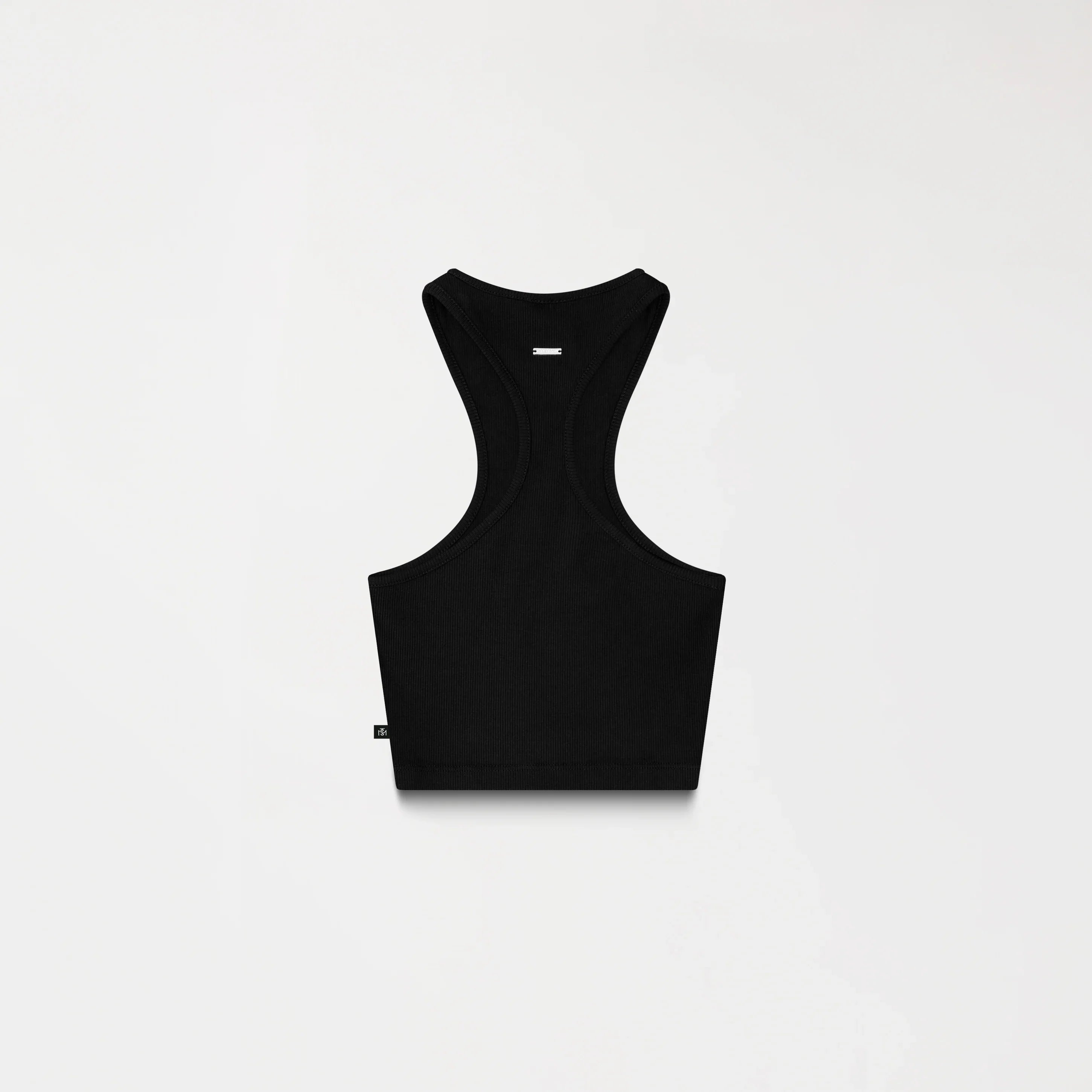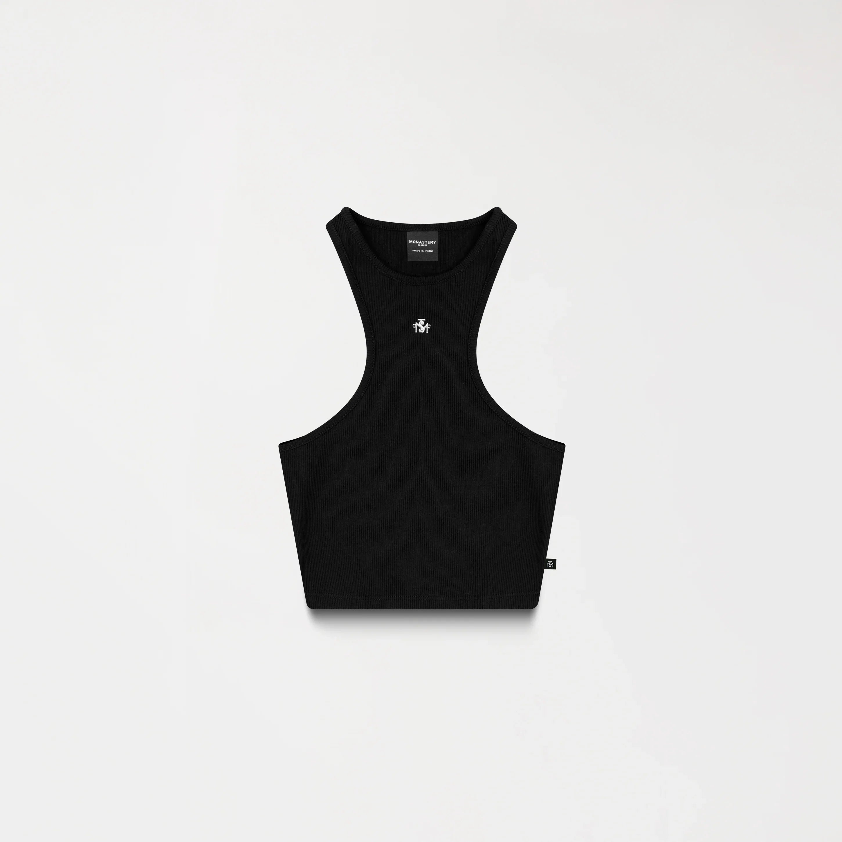 Tank Top femenino elaborado en Rib exclusivo para Monastery, Con una silueta limpia y estructurada, Genna contiene un insumo metálico TSM en plata brillante funciona como acento visual principal en el frente, mientras que en la espalda cuenta con un innsumo contramarcado Monastery,los insumos en acabado plata especial han sido diseñados con exclusividad, resaltando el valor de cada detalle, los cuales refuerzan su identidad desde una estética sobria y precisa.