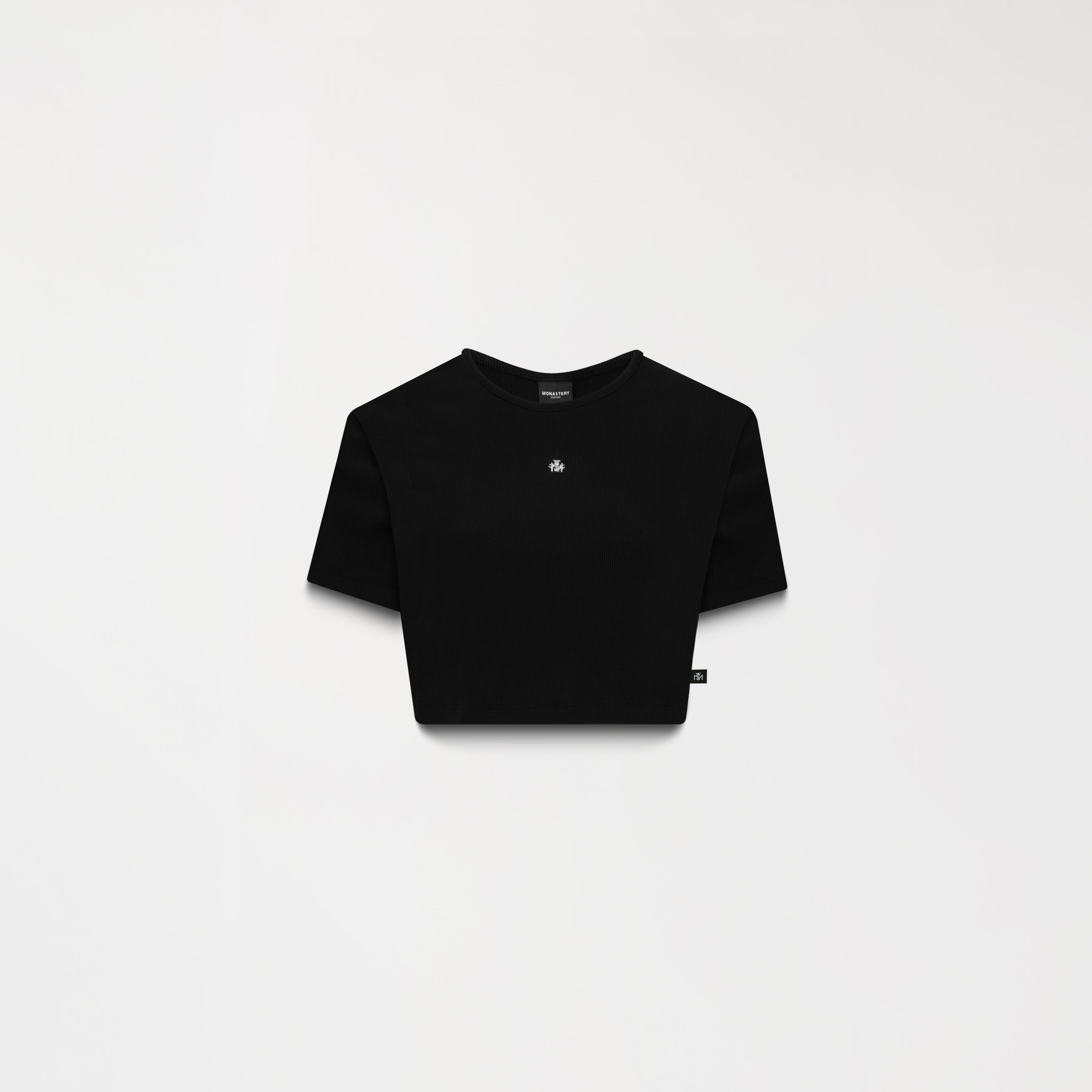 Croptop femenino elaborado en silueta pequeña pensada para resaltar la figura femenina, elaborada en Rib Monastery que brinda un mejor ajuste en el cuerpo, Godiva es una prenda con aplique metalico Tsm en frente y en espalda logo Monastery, brindan un aspecto elegante y contemporáneo por sus insumos plata brillante de alta calidad.