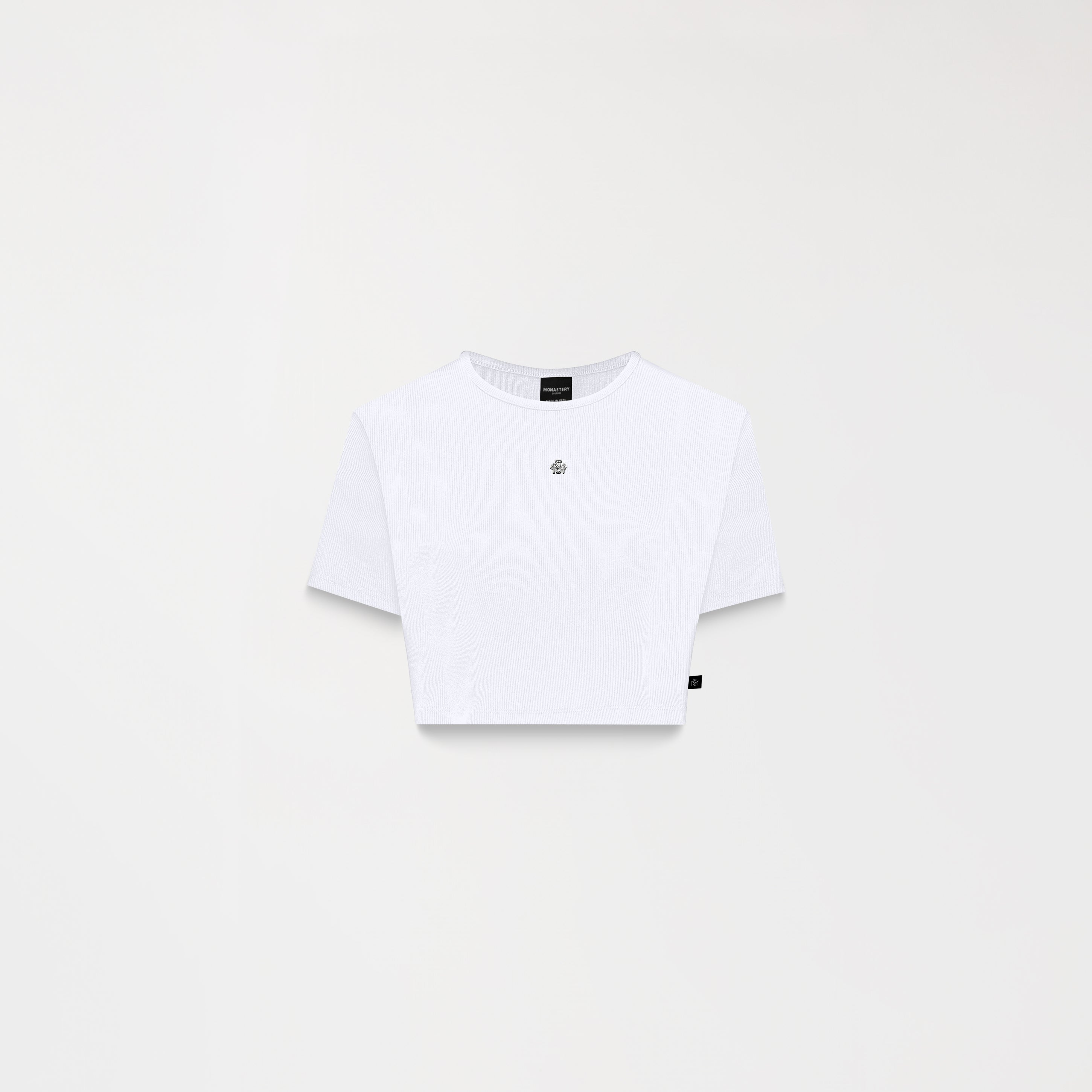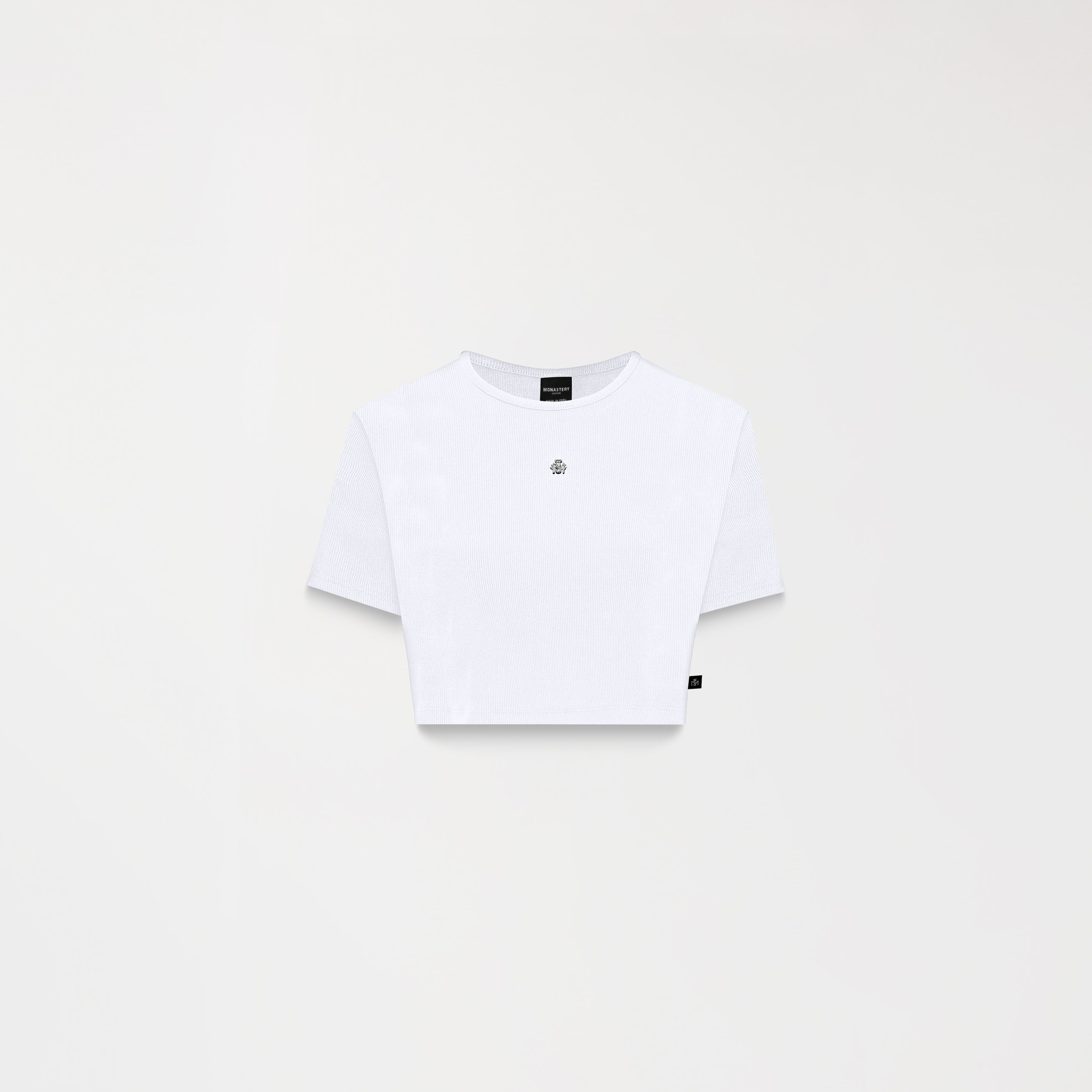 Croptop femenino elaborado en silueta pequeña pensada para resaltar la figura femenina, elaborada en Rib Monastery que brinda un mejor ajuste en el cuerpo, Godiva es una prenda con aplique metalico Tsm en frente y en espalda logo Monastery, brindan un aspecto elegante y contemporáneo por sus insumos plata brillante de alta calidad.