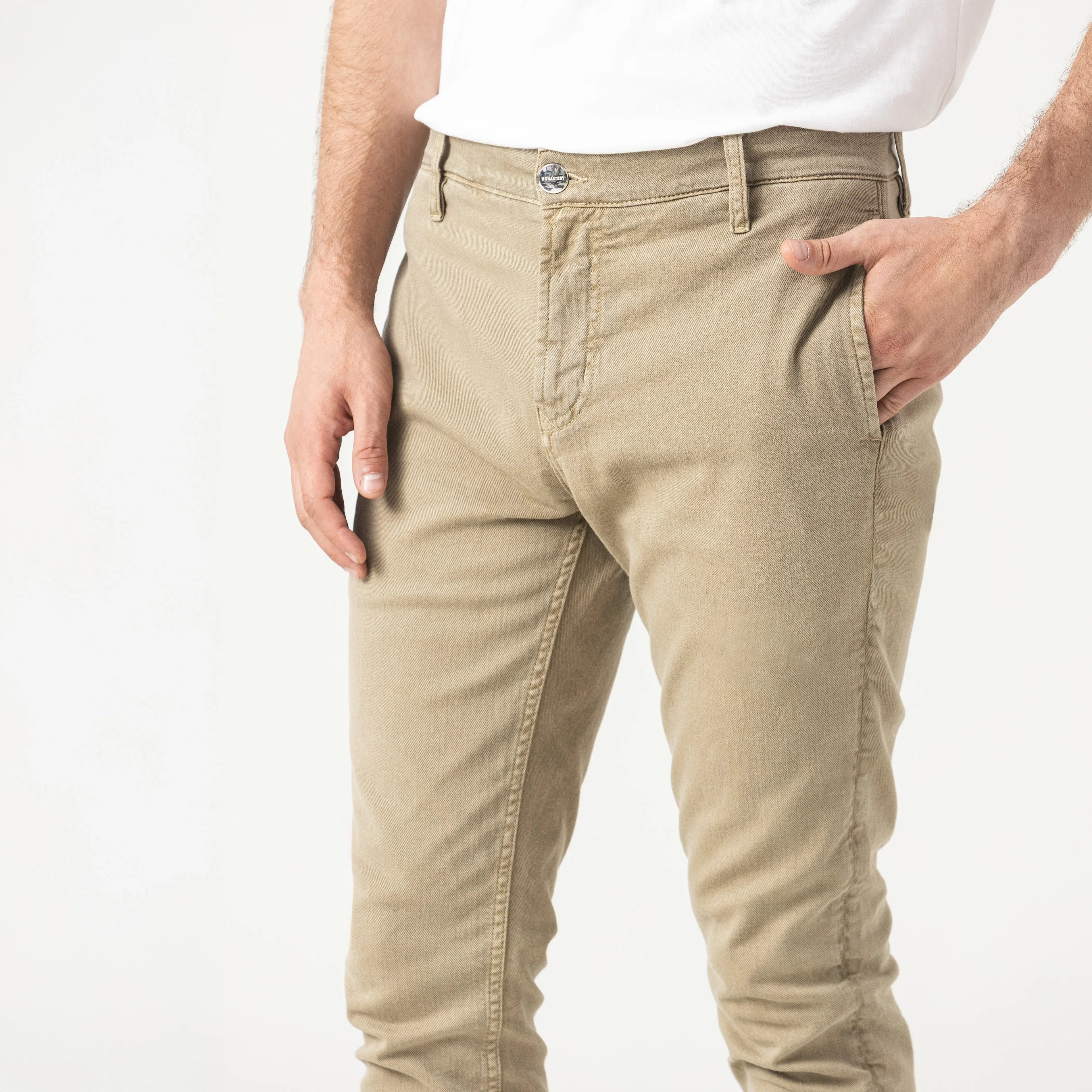 Pantalón masculino elaborado en una mezcla de algodón y elastano en un silueta estructurado chino de tacto suave. Gormé es una prenda cómoda y duradera, un diseño renovado por su silueta y color, junto a detalles metálicos contramarcados con el logo Monastery, creada para que destaques en tus eventos mas formales.