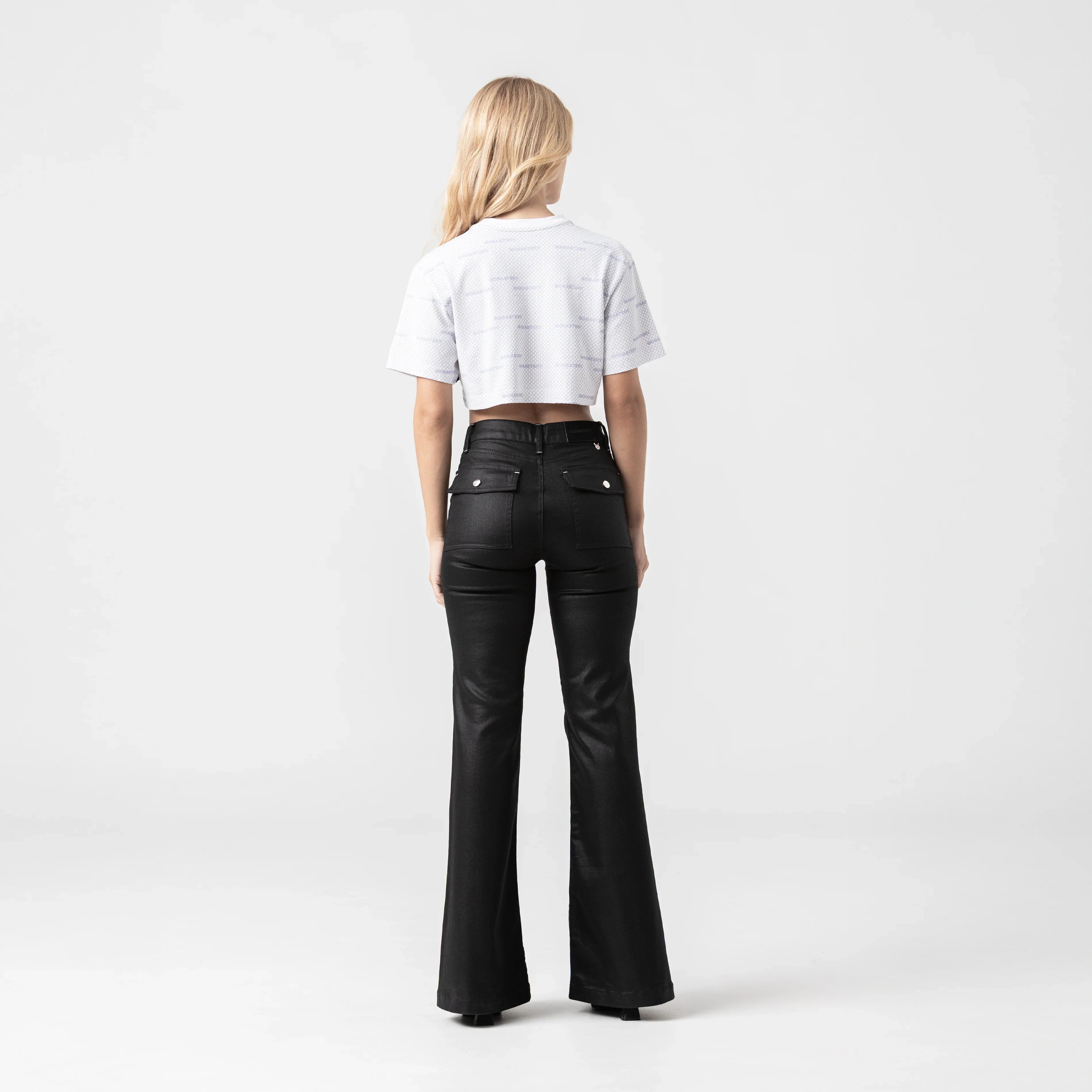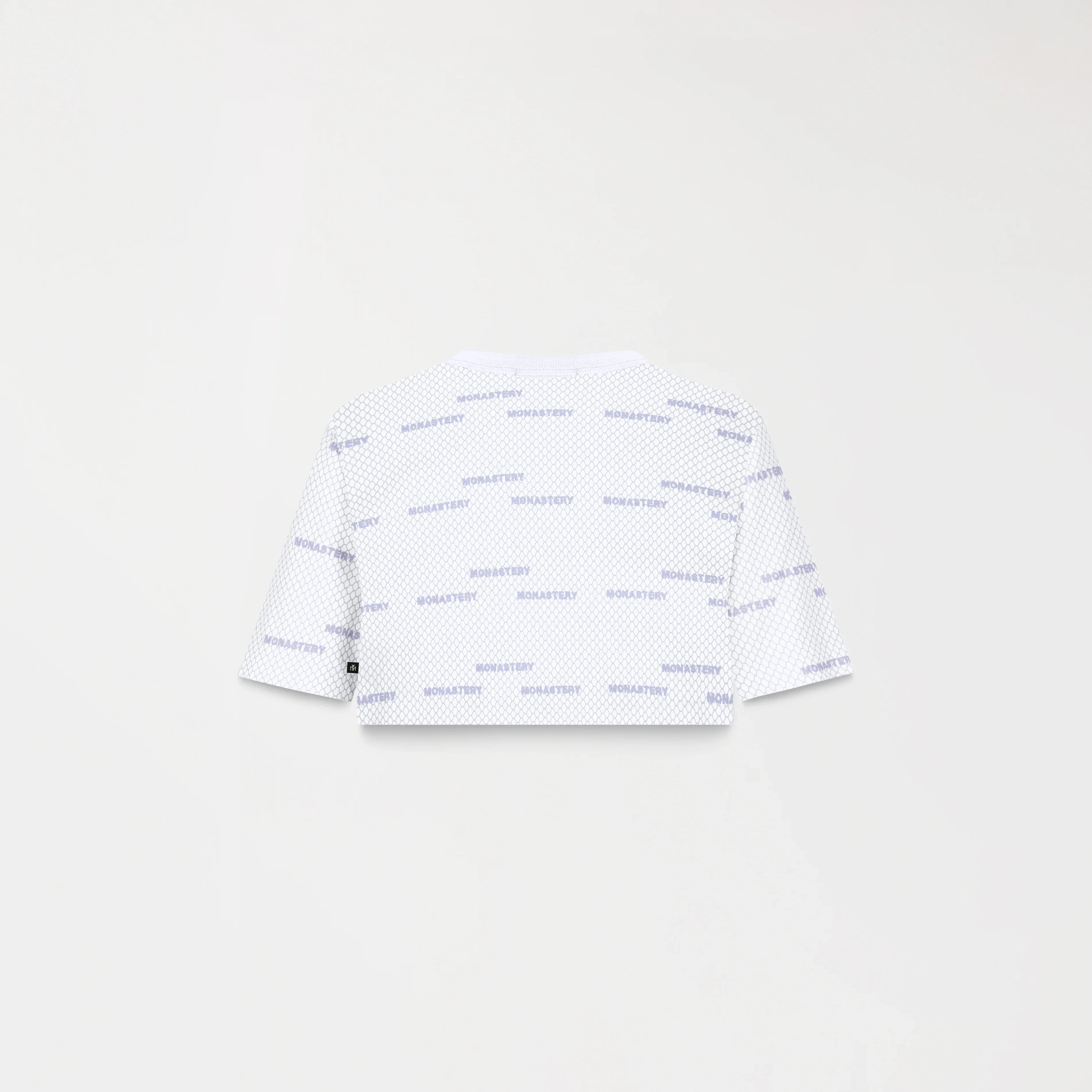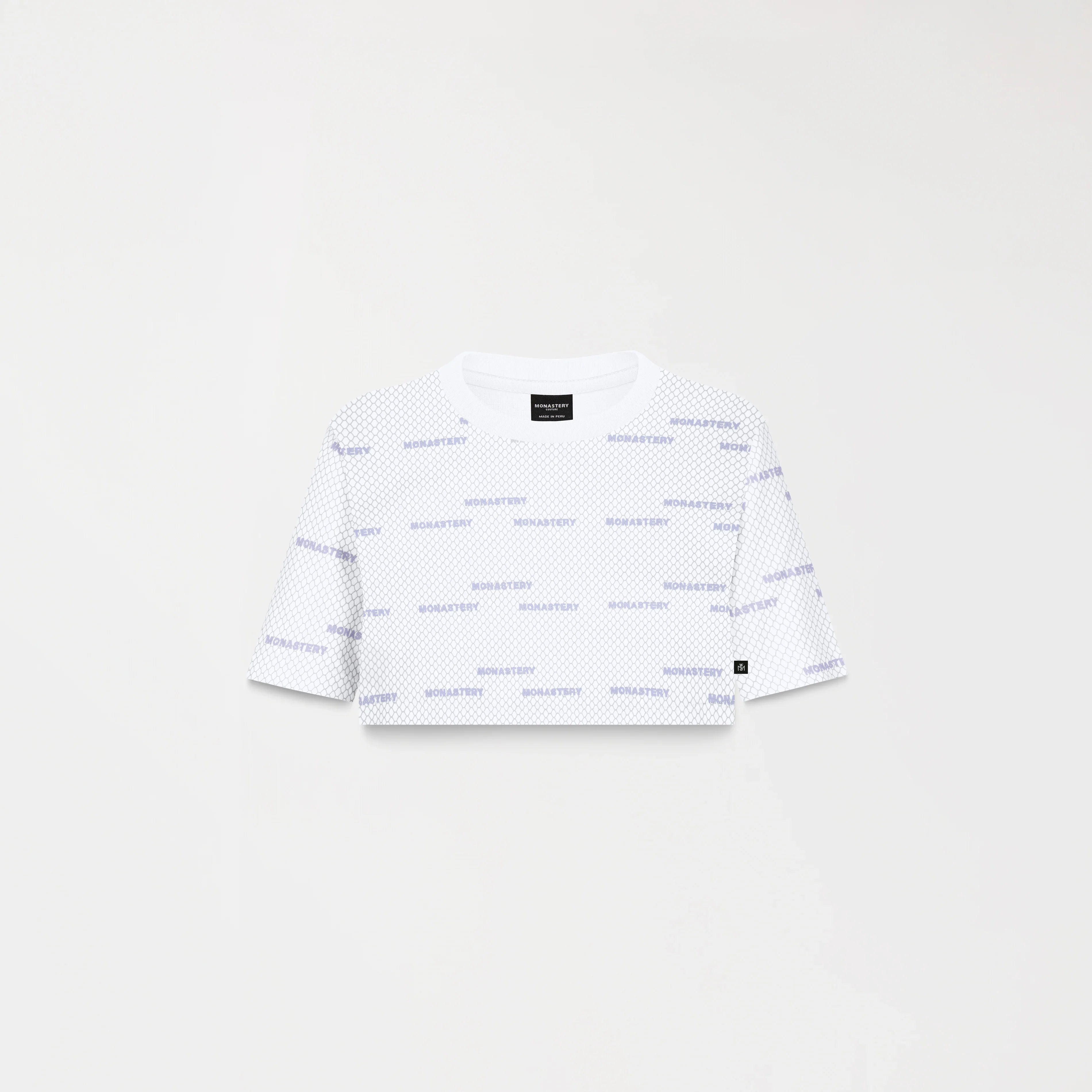 Crop top para mujer en algodón peruano exclusivo para Monastery, elaborada en silueta pequeña, Este crop top cuenta con un fondeo estampado plano en toda la prenda acompañada de un repite de nuestro iconico logo Monastery y en su fondo un arte repetido de un efecto en maya el cual genera distincion y dinamismo perfecto para tu vestuario y estilo.