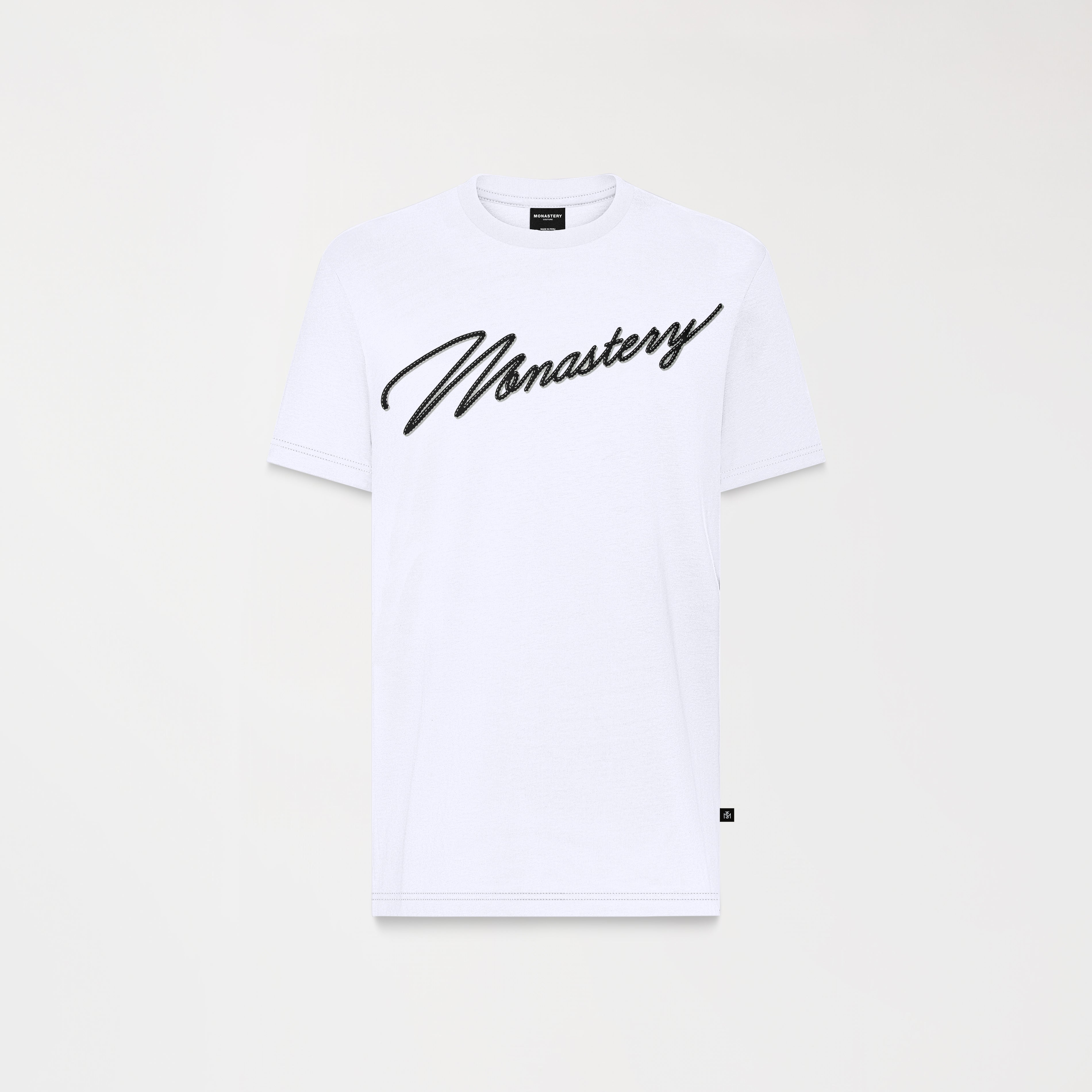 Confeccionada en tela Monastery, proporciona suavidad, estructura y un fit cómodo para el uso diario. Incorpora un cuello en rib de 2.5 cm, El frente se destaca con un estampado plano, limpio y versátil, mientras que el detalle diferencial está en el plastisol plano aplicado sobre pespuntes, que agrega textura sutil y precisión visual, elevando la prenda con un toque moderno. Una camiseta que demuestra que el detalle marca la diferencia.