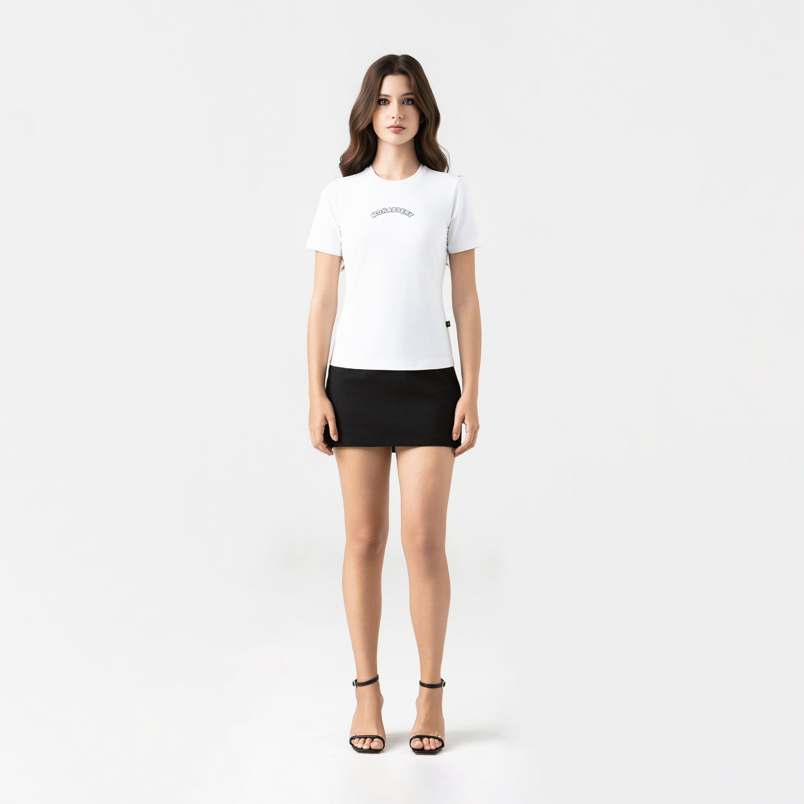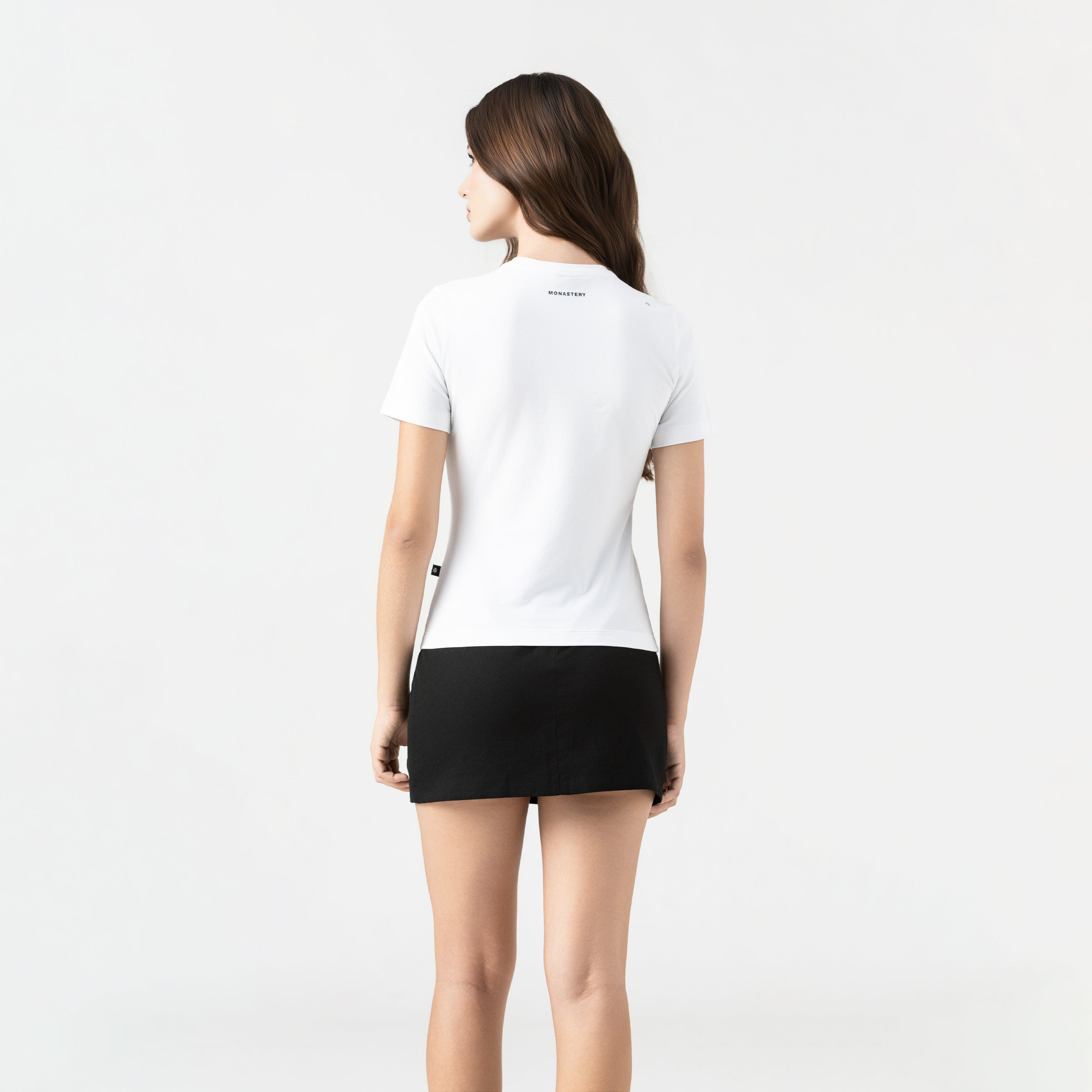 T-shirt femenina elaborada en silueta pequeña pensada para resaltar la figura femenina, atravez de su base