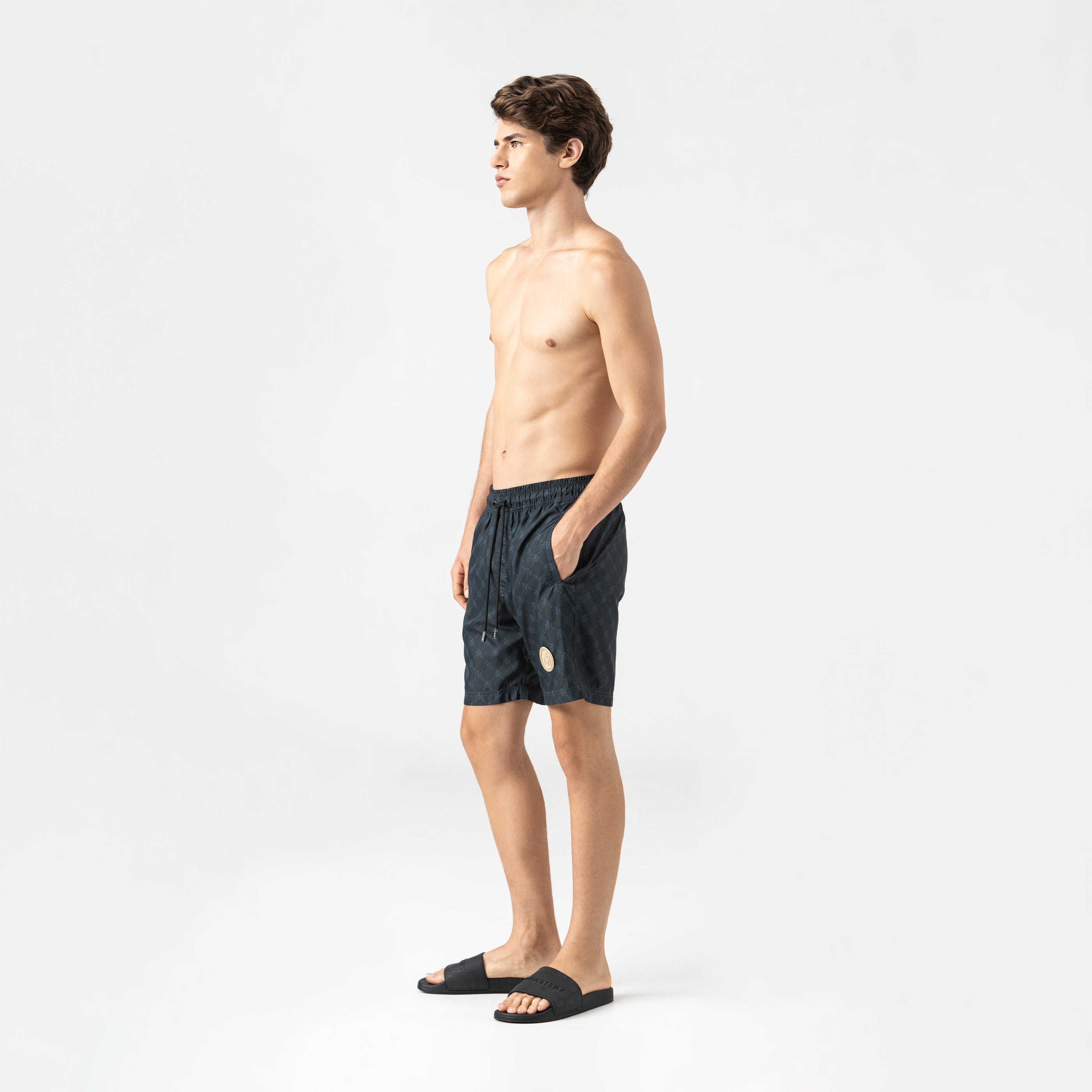 Este swimshort masculino está elaborado en una base textil antifluido, ideal para actividades acuáticas gracias a su ligereza, secado rápido y resistencia al agua, presenta una silueta larga, el diseño resalta por una sublimación integral que cubre toda la prenda con el arte del logo TSM, logrando una propuesta gráfica audaz y llena de identidad. En la pierna izquierda incorpora un aplique en PVC que se destaca por sus colores vibrantes y el logo de la marca, añadiendo textura y un punto focal atractivo, en la parte posterior, el short cuenta con un bolsillo ribeteado con estampado plano. Una prenda pensada para quienes buscan destacar con estilo propio, combinando tecnología textil, diseño gráfico y detalles de marca de alto impacto.