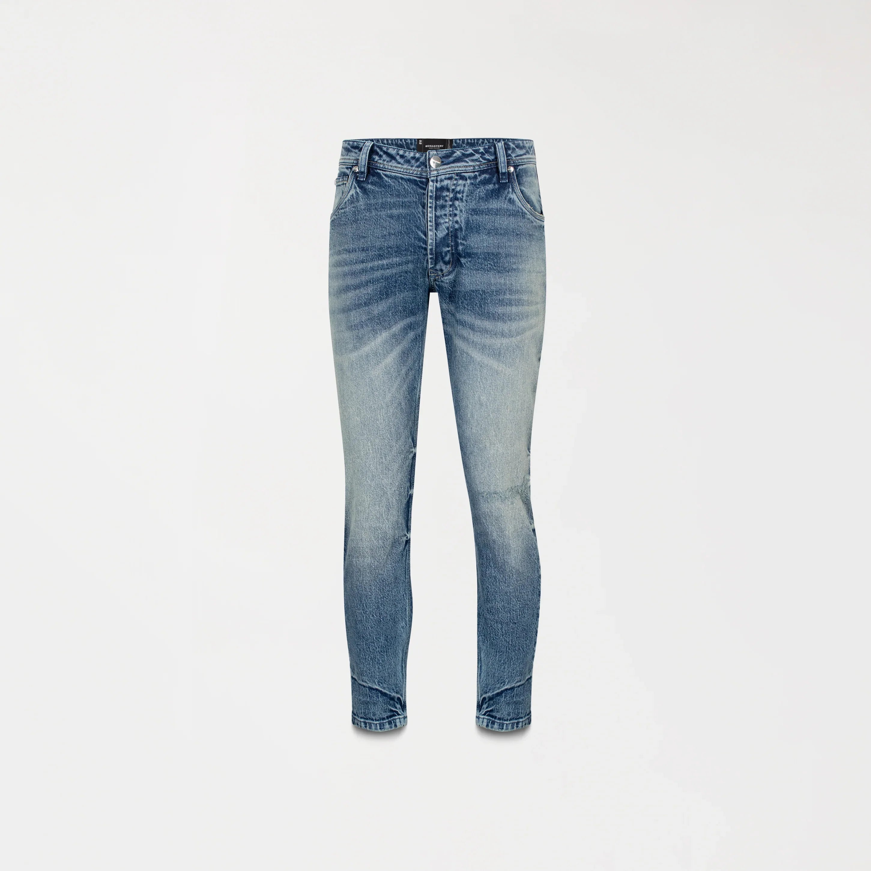 Este jean ha sido elaborado en tela MST Denim Ace, un desarrollo exclusivo de Monastery que equilibra estructura y comodidad. Su tono stone medio, combinado con desgastes estratégicos, aporta carácter y un acabado visual trabajado que define la identidad de la prenda. Los insumos metálicos en plata brillante, todos contramarcados Monastery, refuerzan su presencia premium, mientras que la garra posterior en tono café contramarcada funciona como firma distintiva, integrando diseño y detalle con precisión. Una pieza esencial pensada para quienes buscan estilo y autenticidad en cada look.