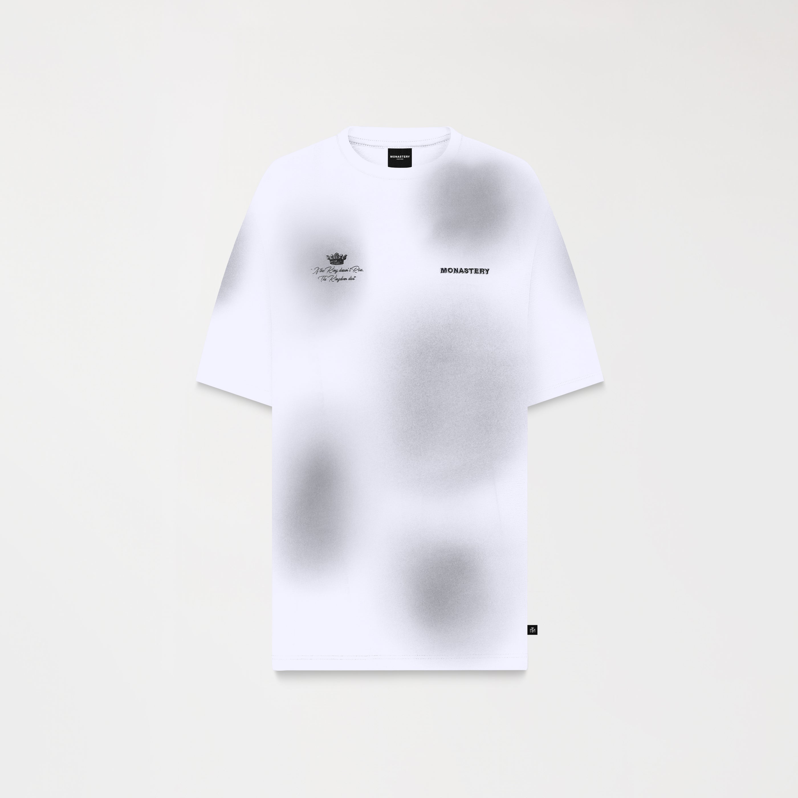 Loan es una camiseta masculina, elaborada en 100% algodón exclusivo para Monastery. Esta prenda presenta en frente un arte exclusivo para la colección The King y nuestro icónico logo Monastery en técnica de bordado plano, en espalda tiene una consigna que se presenta como propósito y principio de vida; combinando técnicas de bordado plano, semialta y alta densidad; ésta es una prenda con detalles renovado, como su efecto ahumado, creando un arte para sobresalir.