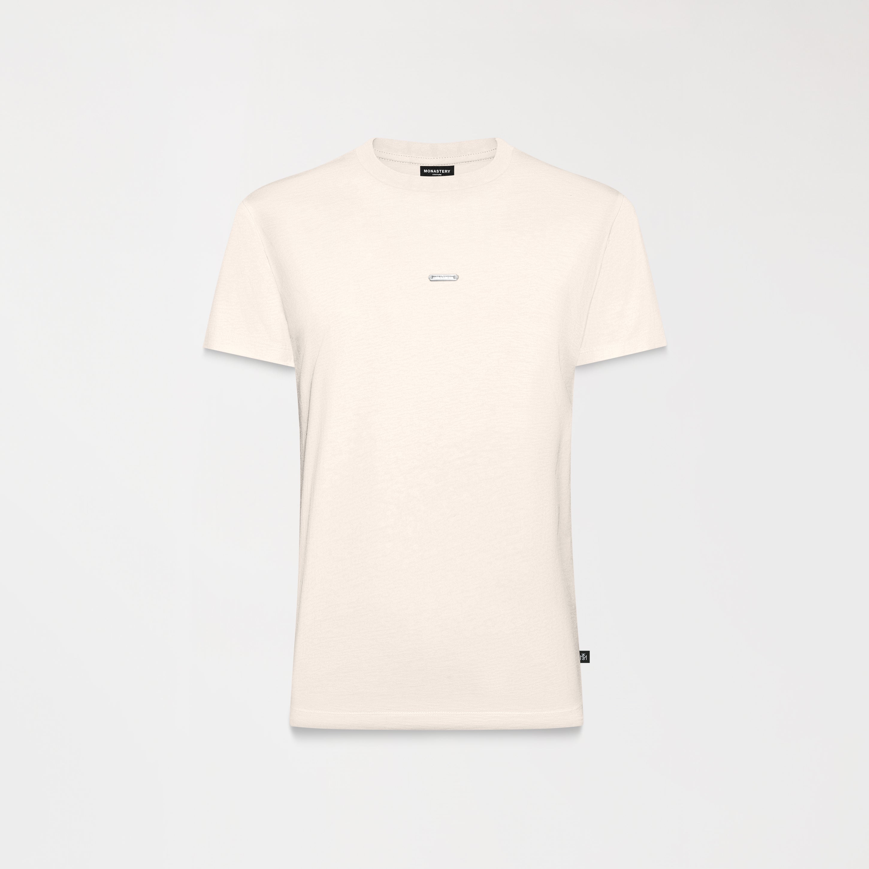 En el frente, un aplique metálico exclusivo de la marca aporta un toque distintivo y un sutil juego de texturas que eleva la estética de la prenda. En la parte posterior, un estampado plano complementa el diseño con un acabado limpio y elegante. Una pieza versátil que combina sencillez, modernidad y un aire refinado característico de Monastery.