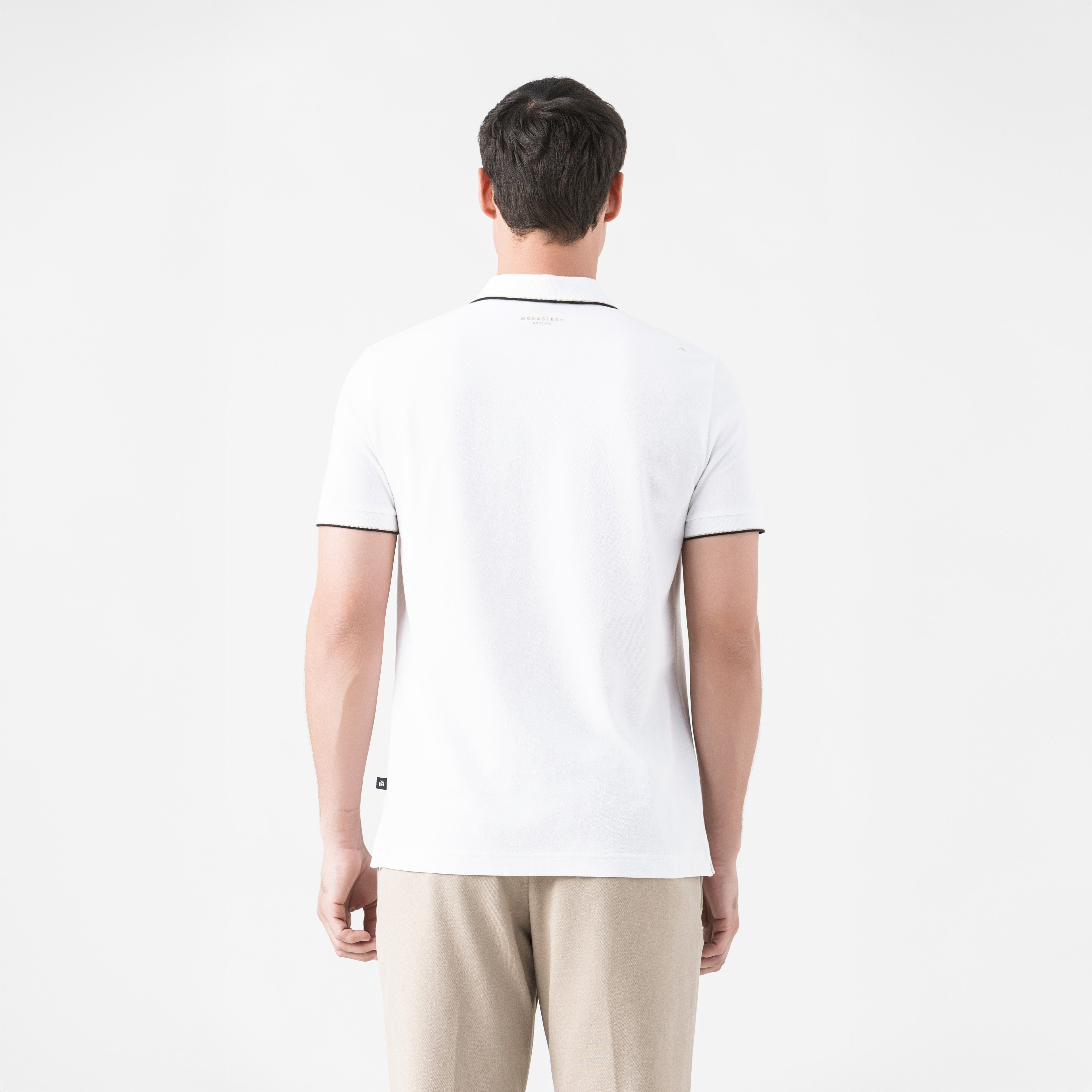 La polo Nolan combina sobriedad y detalle con un enfoque moderno, confeccionada en algodón 100% pima peruano exclusivo para Monastery y silueta regular. Su cuello tejido y puños con tipping en contraste realzan la estructura y aportan definición. El logo TSM bordado al frente y el estampado en alta densidad en la espalda refuerzan la identidad de la marca con sutileza, mientras que la perilla interna en tono contraste añade un acabado sofisticado. Una pieza pensada para elevar el look casual con intención y estilo refinado.
