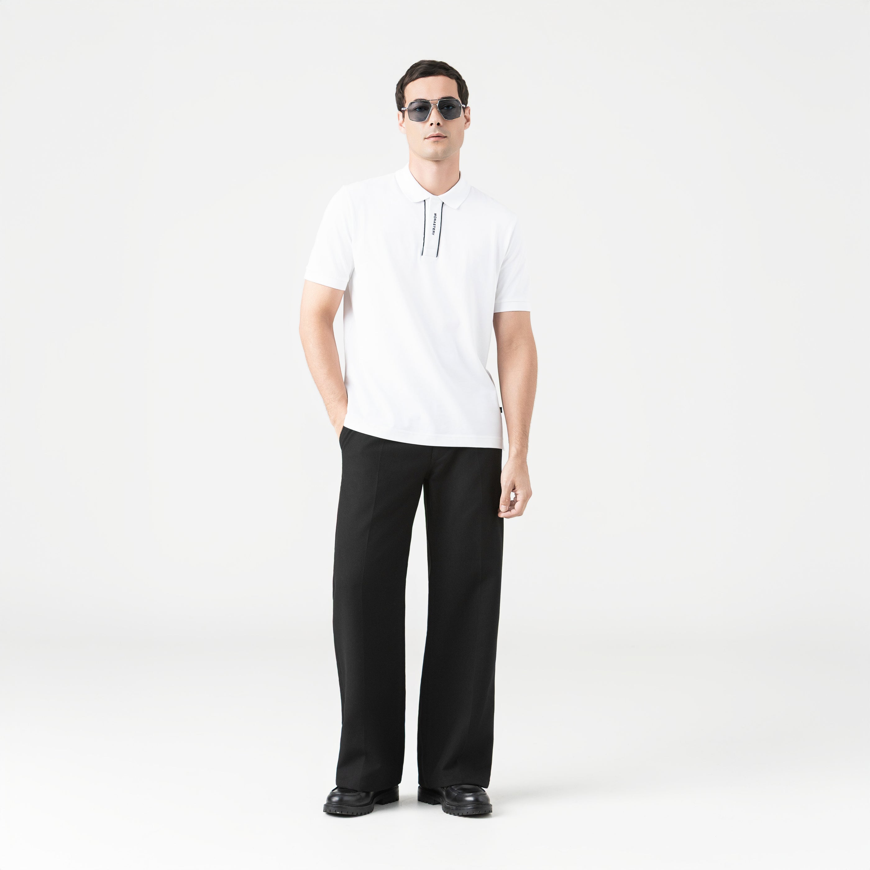 La polo Othar redefine la elegancia casual con una silueta regular limpia y detalles de alto nivel, confeccionada en algodón 100% pima peruano exclusivo para Monastery. Su cuello y puños tejidos aportan estructura, mientras que la perilla con botonadura oculta y sesgos en contraste añade un acabado sofisticado. El bordado plano en la perilla y el estampado en alta densidad en la espalda elevan el carácter distintivo de la prenda. Ideal para quienes buscan estilo con discreción y autenticidad en cualquier ocasión.