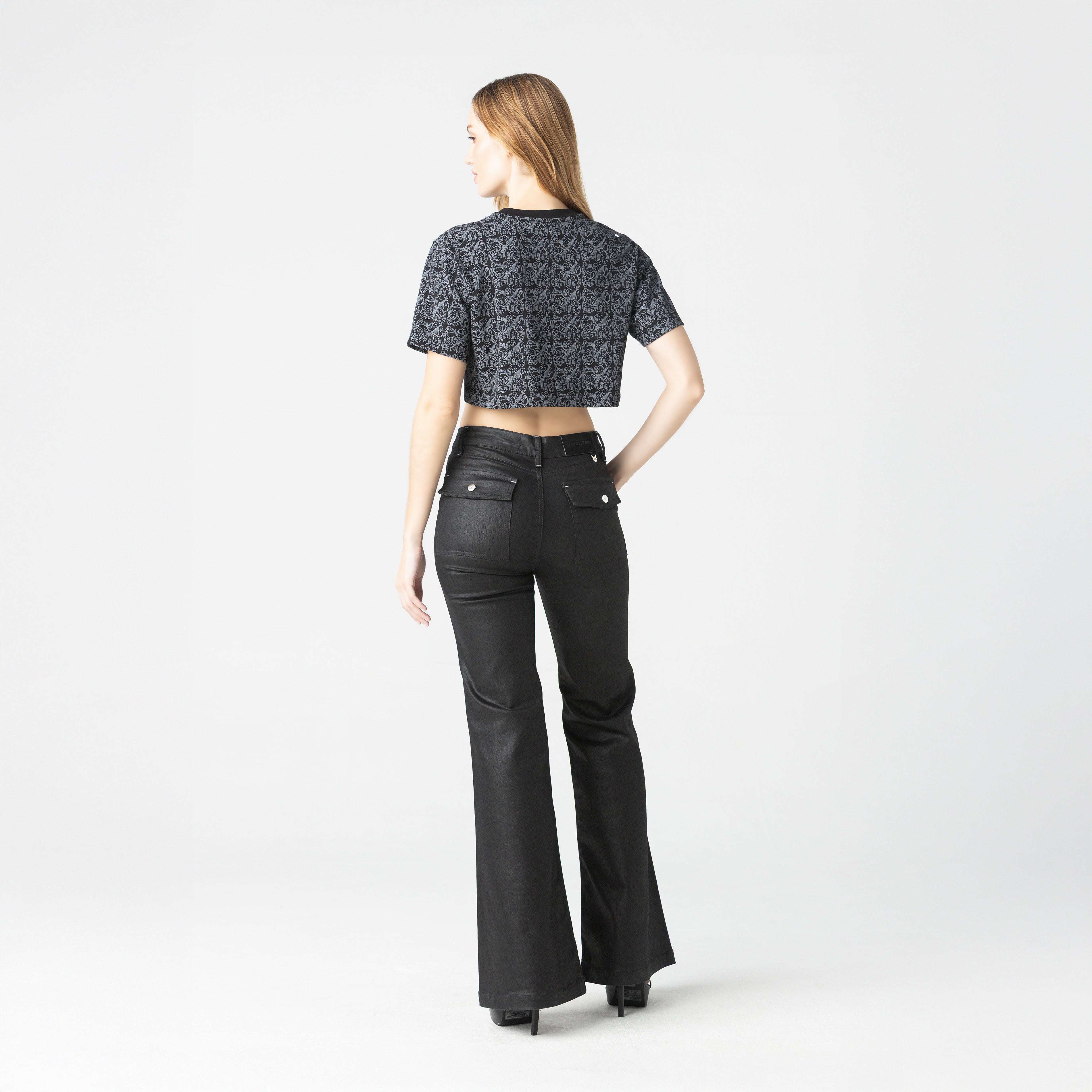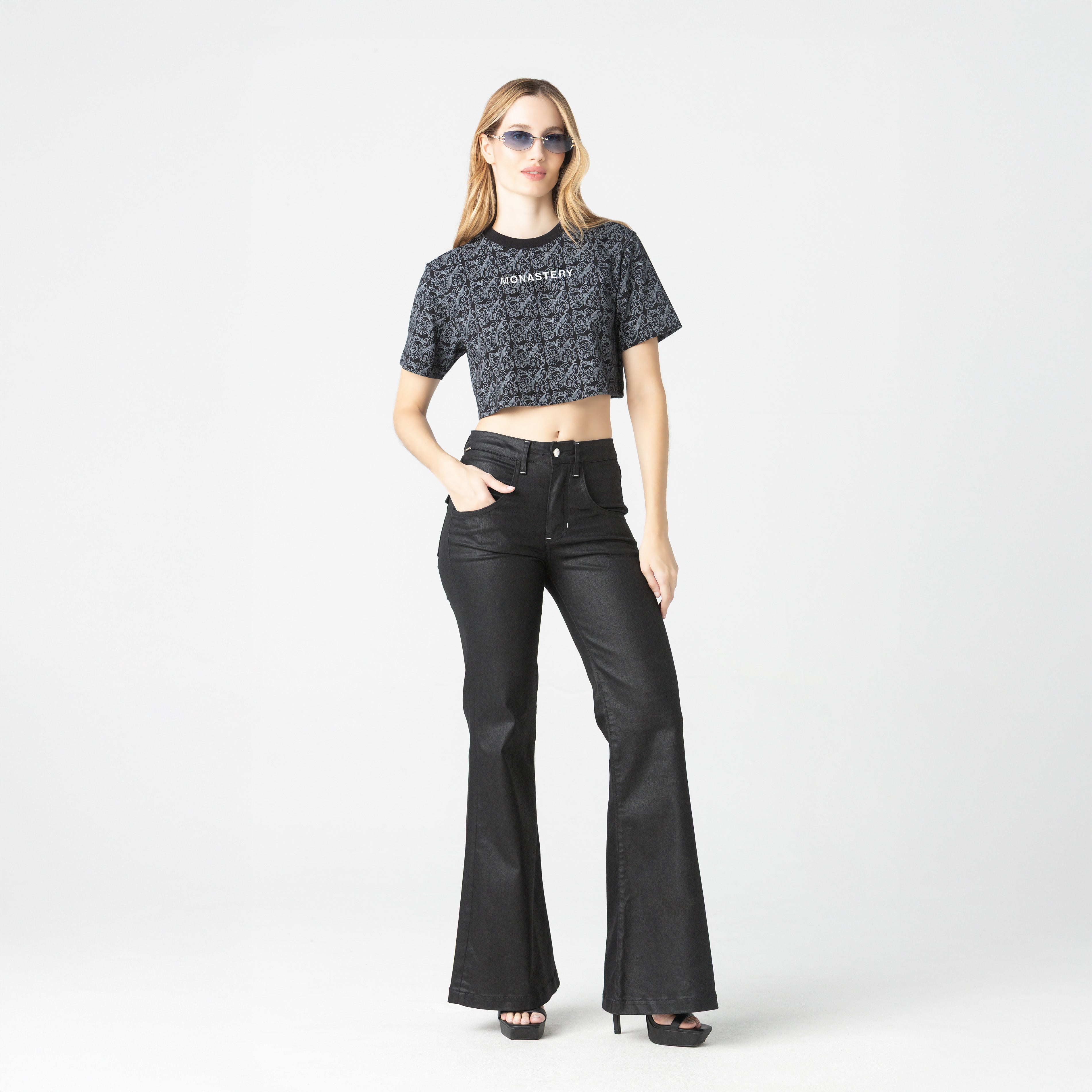 Crop top femenino de silueta pequeña, diseñado para un ajuste moderno y favorecedor que realza la figura con precisión. Presenta un fondeo integral en plastisol diluido, que aporta profundidad visual y un acabado suave al tacto, elevando la percepción del diseño.