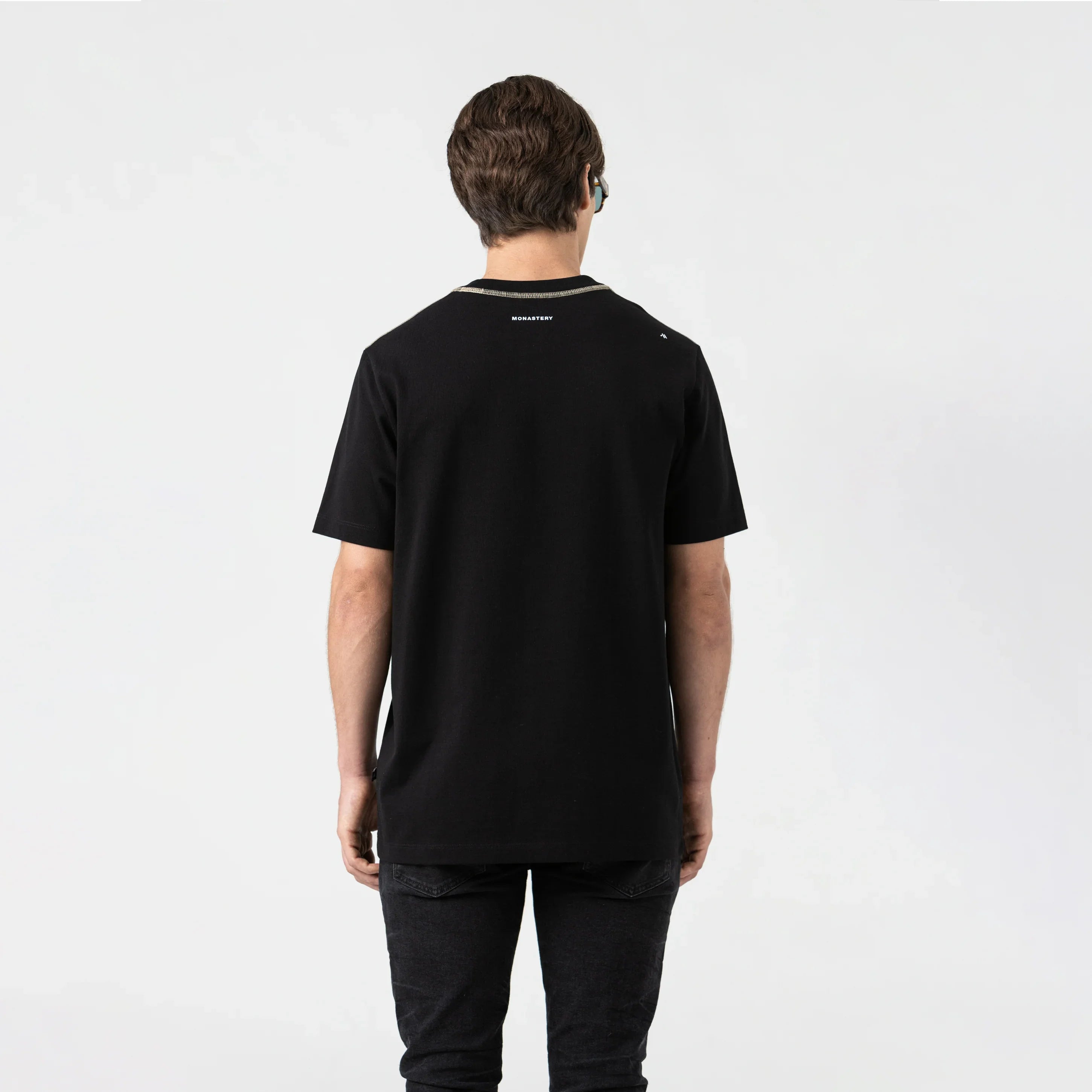 La Rooney es una t-shirt masculina que combina versatilidad y estilo cuidado. Confeccionada en algodón de alta calidad y silueta regular, ofrece un equilibrio perfecto entre confort y estructura. El cuello en rib de 2.5 cm añade definición, mientras que los estampados en alta densidad al frente y en la espalda aportan un carácter gráfico distintivo. Un aplique con el logo Monastery refuerza su identidad con sutileza. Una pieza pensada para quienes transitan con naturalidad entre lo casual y lo sofisticado.