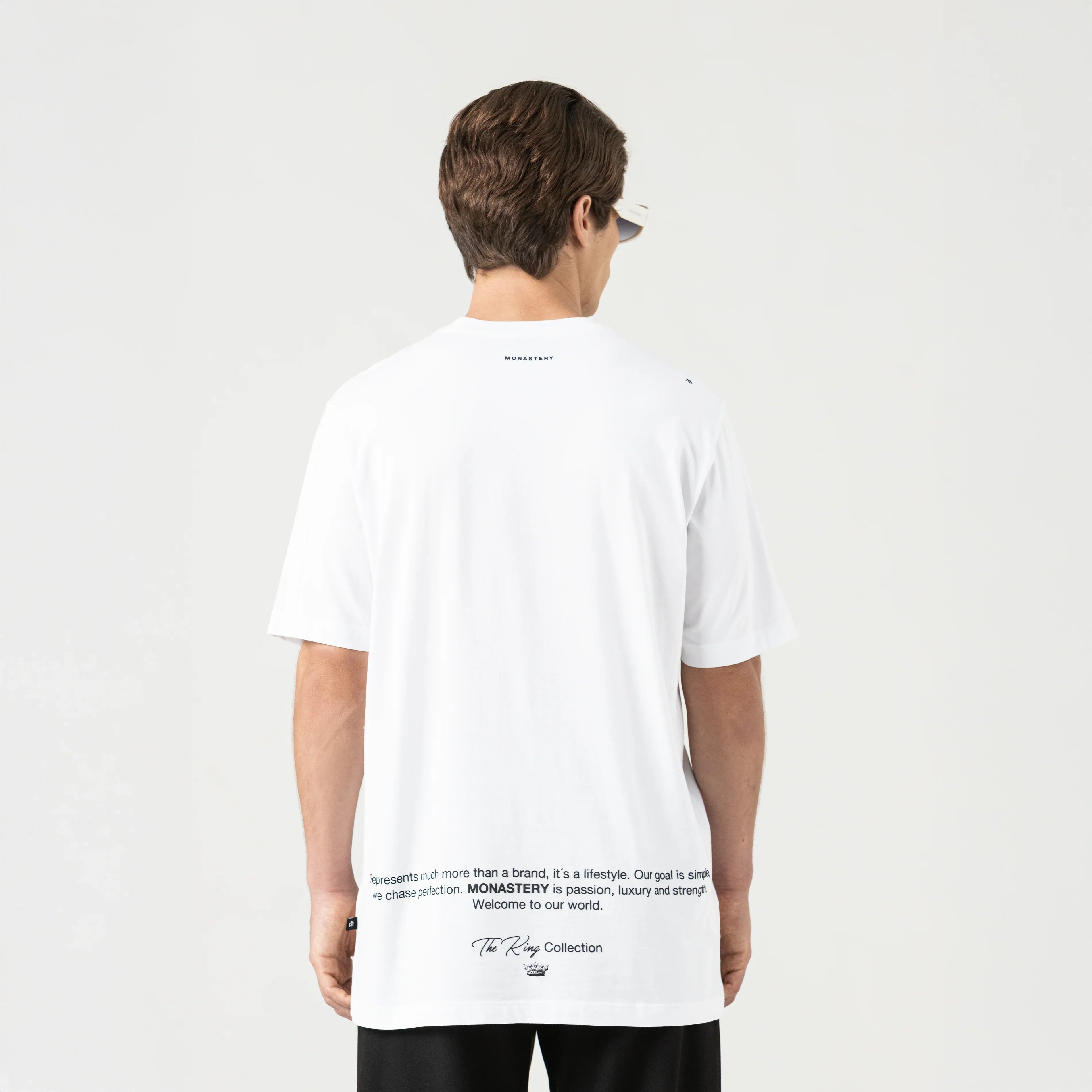 SACTUM es una camiseta masculina Regular Fit que equilibra funcionalidad y diseño gráfico contemporáneo. Incorpora un cuello en rib de 2,5 cm que aporta estructura, confort y un acabado sólido al diseño general.
