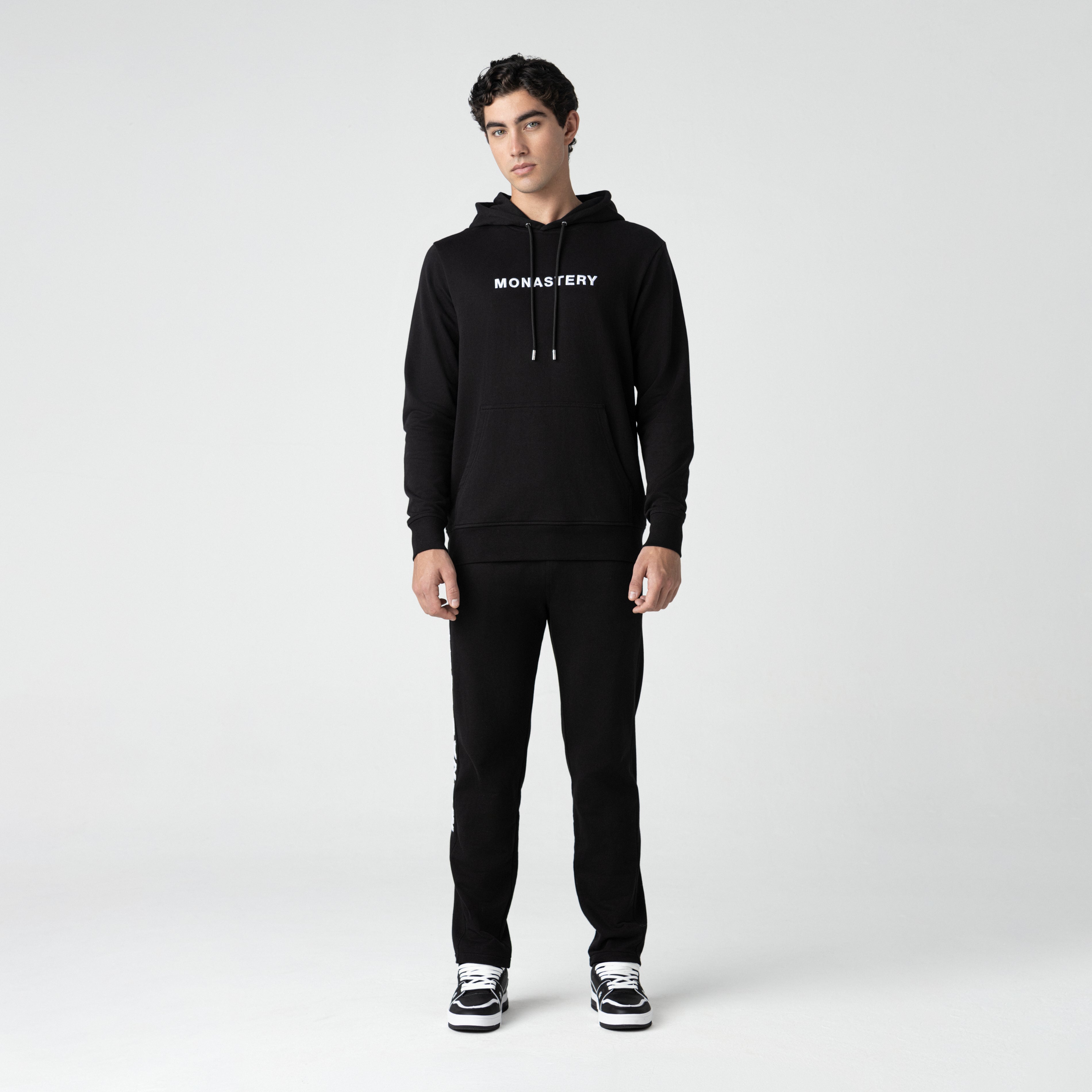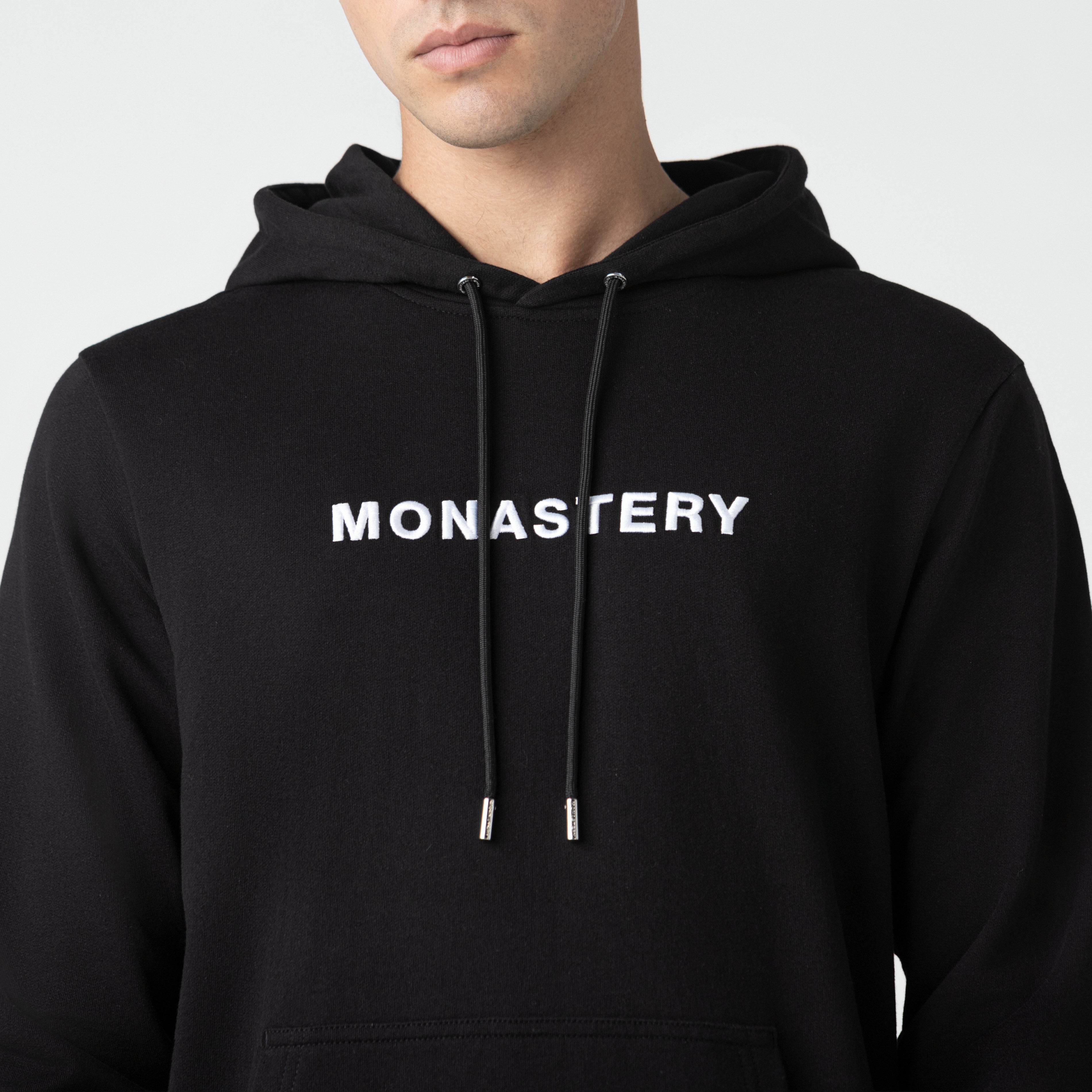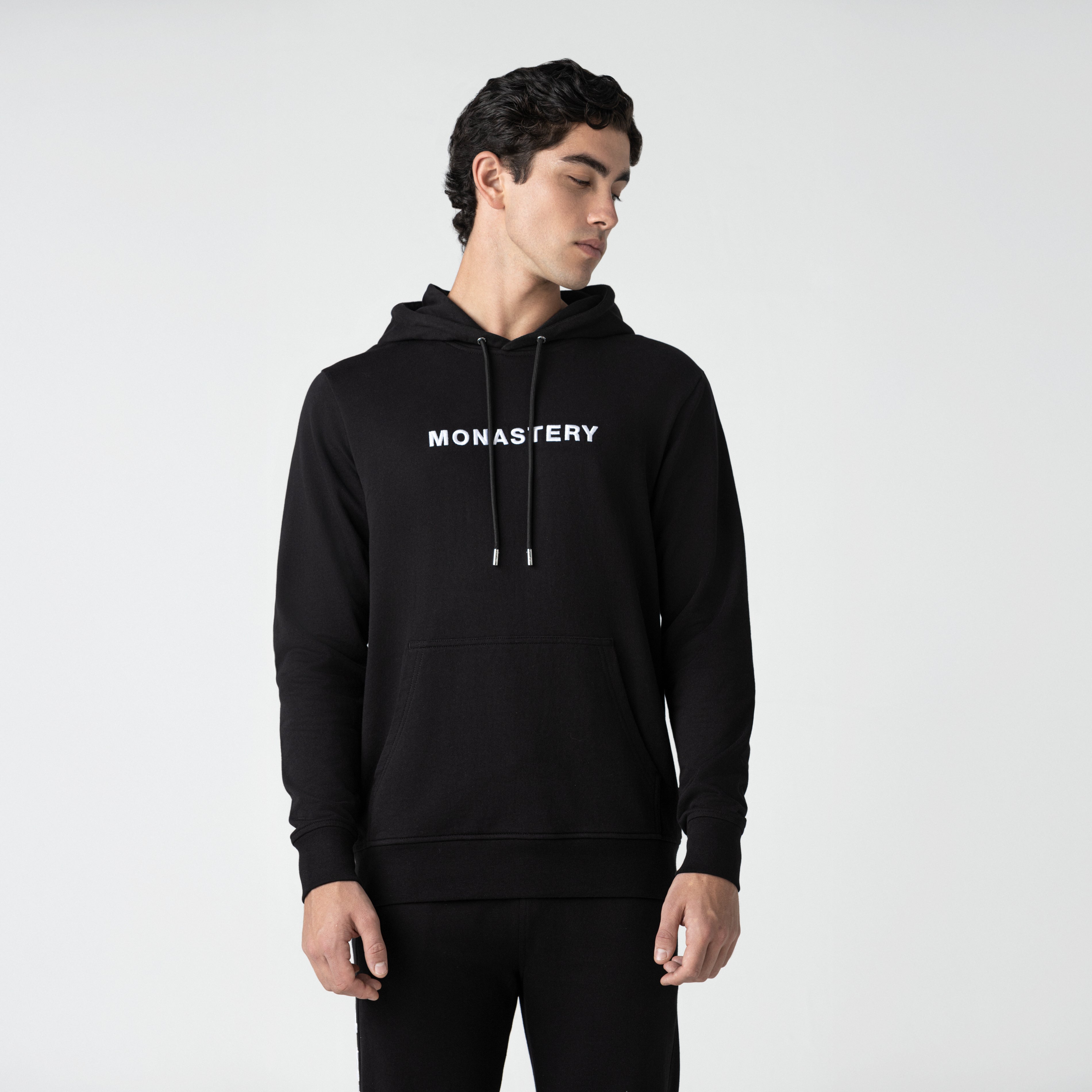Incorpora capucha y bolsillo tipo canguro, integrados de manera funcional y equilibrada al diseño. En el frente, presenta arte Monastery aplicado en técnica de bordado 3D, aportando volumen y carácter. En la espalda, el logo insignia en estampado plano completa la pieza con una lectura gráfica limpia y reconocible.