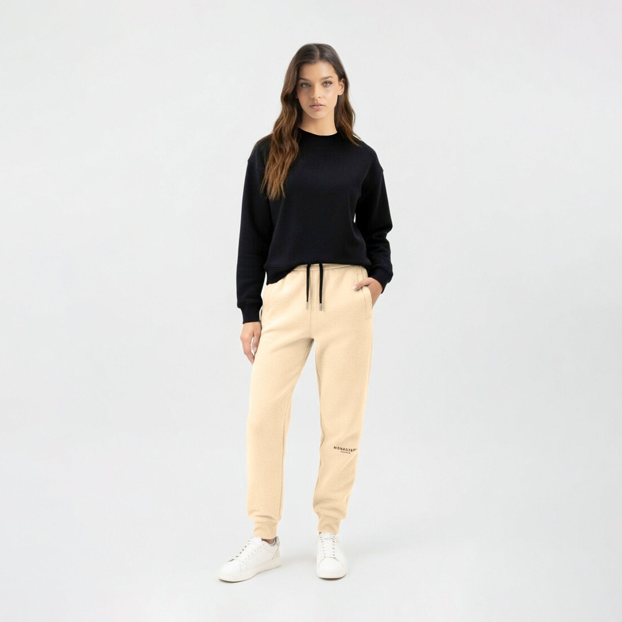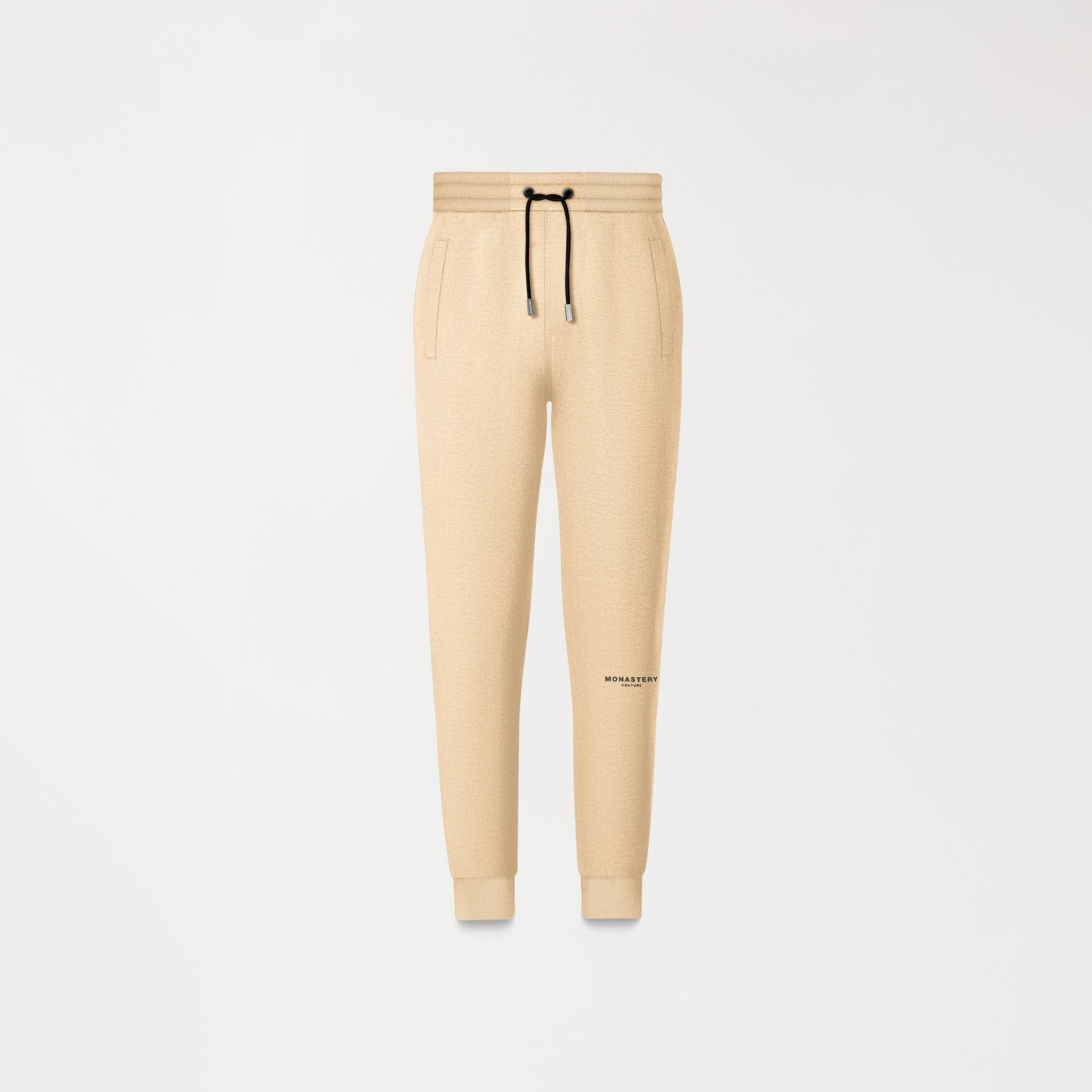 Nuestro Jogger Satis, presenta texto Monastery Couture estampado a la altura de la rodilla. Además, cuenta con cordón de punteras metálicas contramarcadas, y una bota recta con tobillera en rib para un toque distintivo. La base textil está compuesta al 100% por algodón peruano. Este Jogger está confeccionado en una silueta regular, diseñada para realzar la figura femenina.