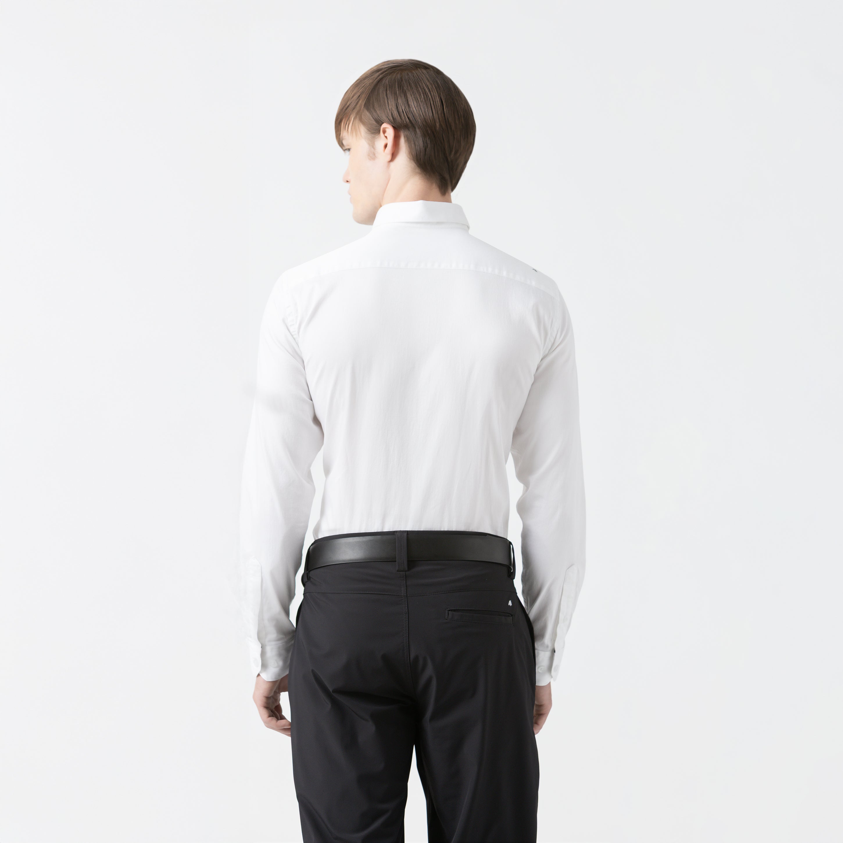 Shirt men de manga larga y silueta regular, disponible en dos colores esenciales: negro y blanco.