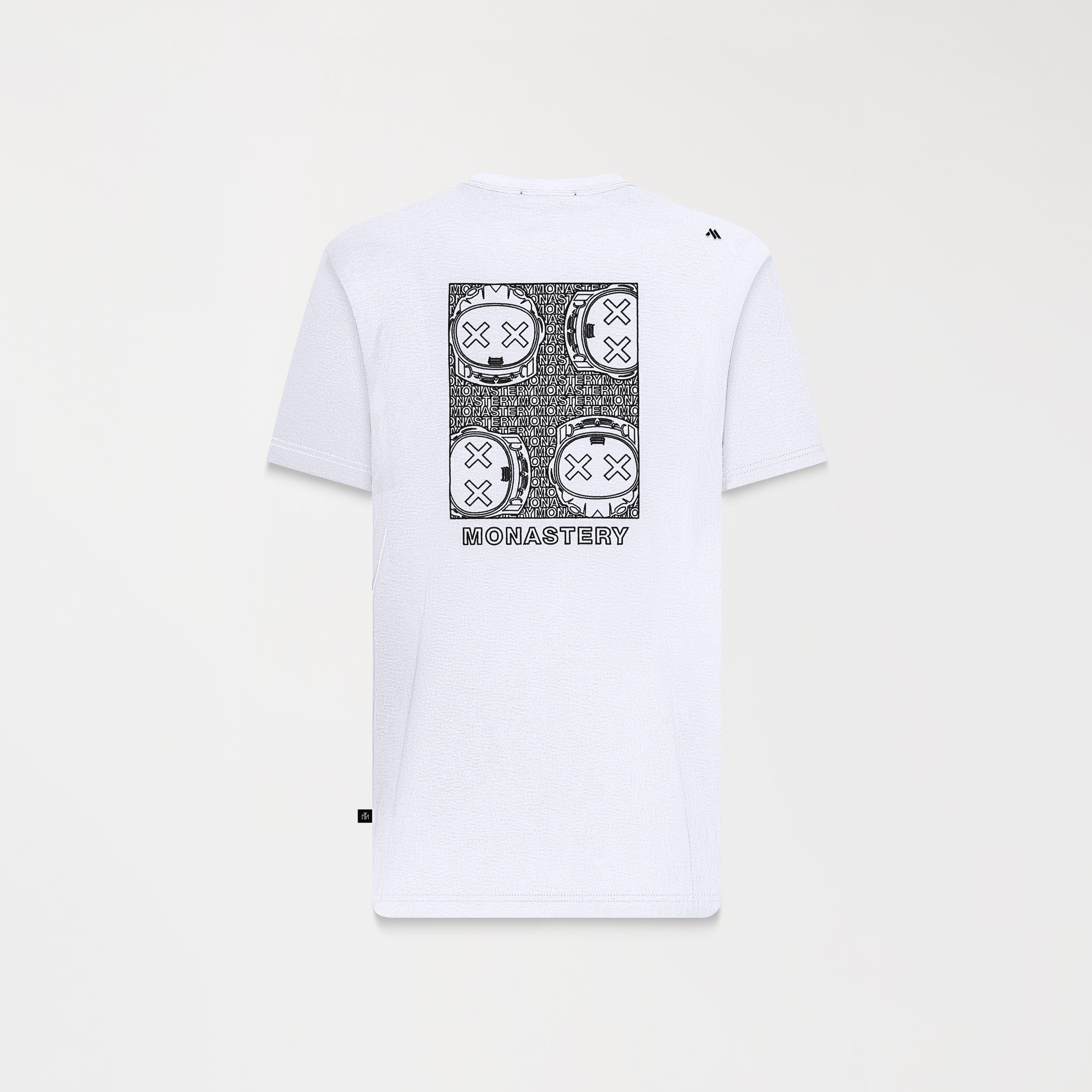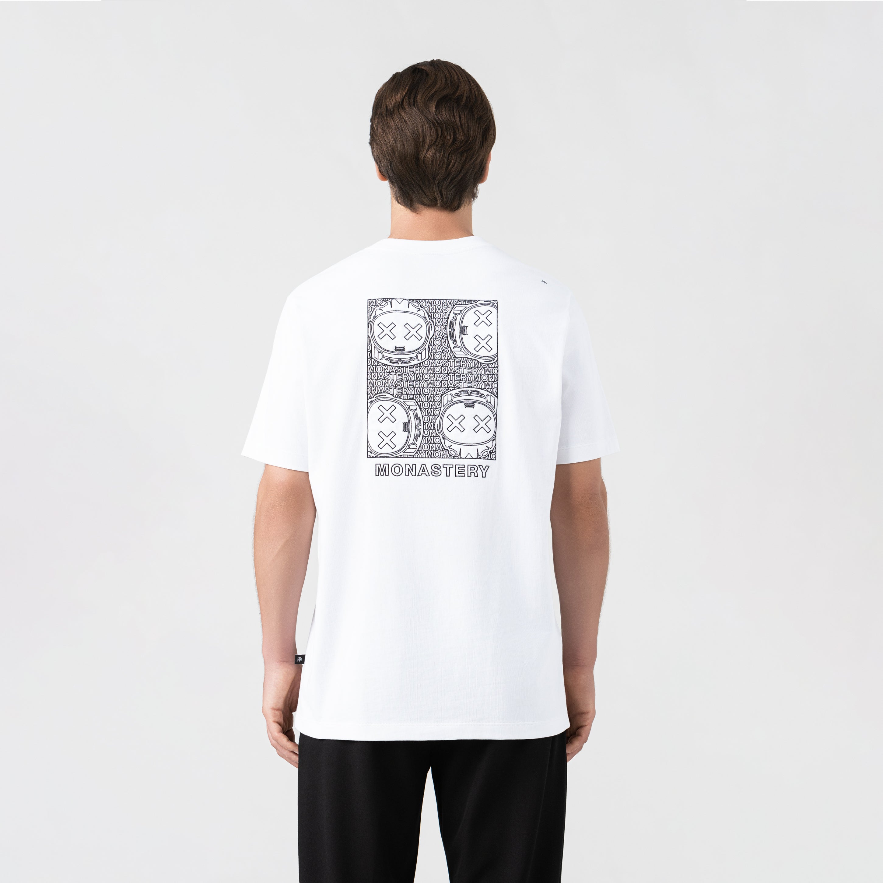 Troya es una t-shirt masculina de silueta regular, confeccionada en algodón de alta calidad y definida por un cuello en rib de 2.5 cm que aporta estructura y proporción. En el frente, el logo Monastery se borda con precisión, generando un acento de sobriedad y sofisticación. La parte posterior revela al icónico astronauta Phillip en bordado, acompañado de un estampado en alta densidad que añade profundidad visual. Una pieza que conjuga elegancia y carácter, pensada para expresar estilo con naturalidad en cada ocasión.